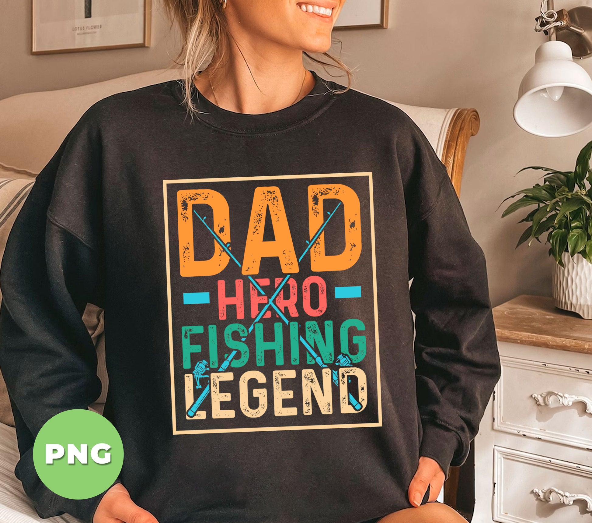 Dad Hero Fishing Legend, Father's Day, Retro Dad, Love Father, Digital Files, Png Sublimation