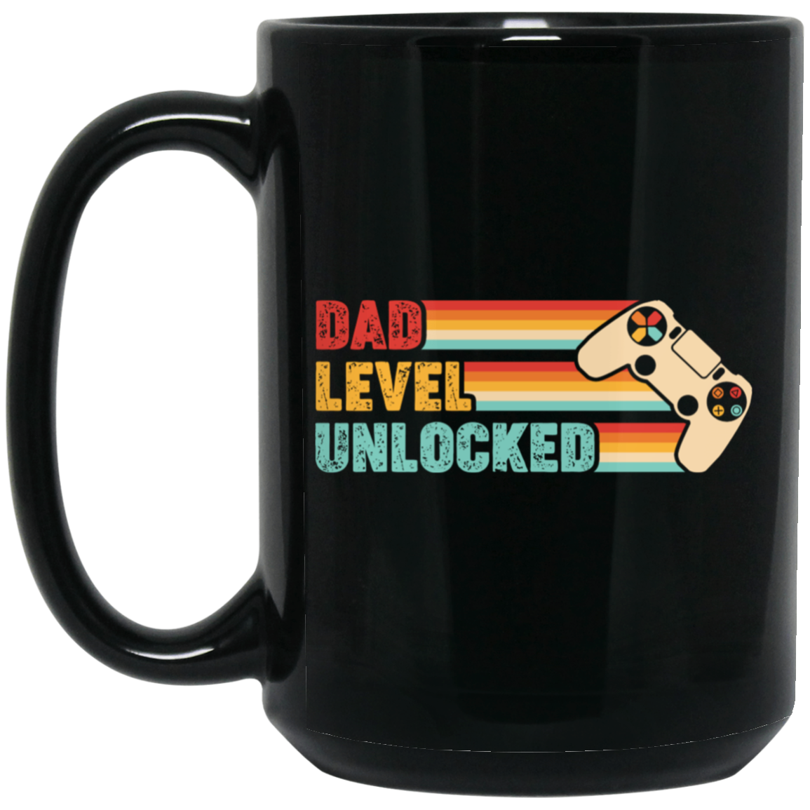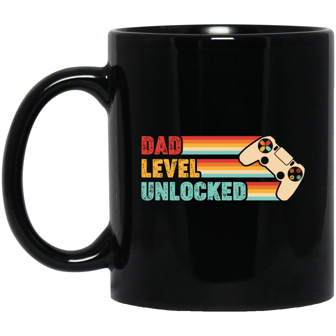 Dad Level Unlocked, Retro Dad Gifts, Video Games Player, Father's Day Gifts Black Mug