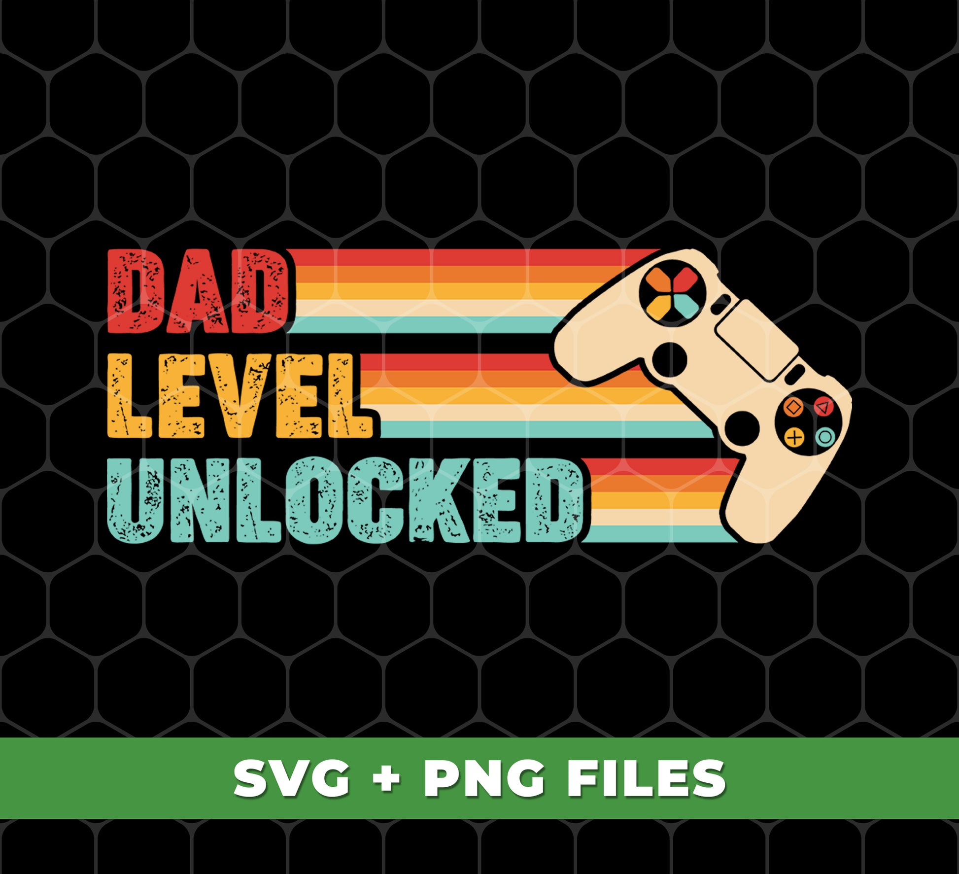 Dad Level Unlocked, Retro Dad Gifts, Video Games Player, Father's Day Gifts, Digital Files, Png Sublimation
