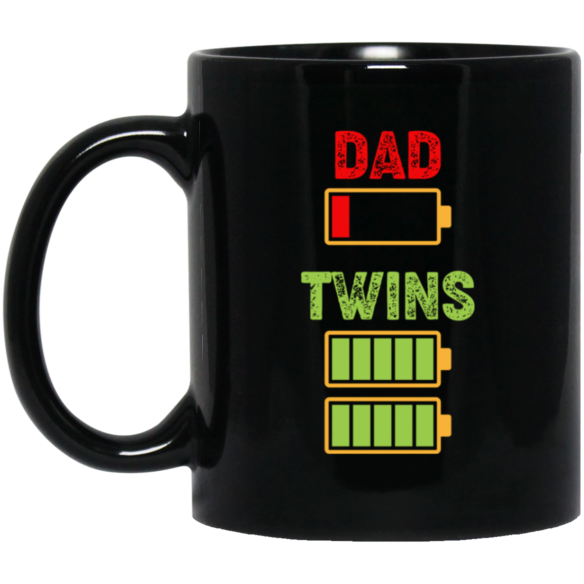 Dad Of Twins, Father's Day Gift, Dad Out Of Battery Black Mug