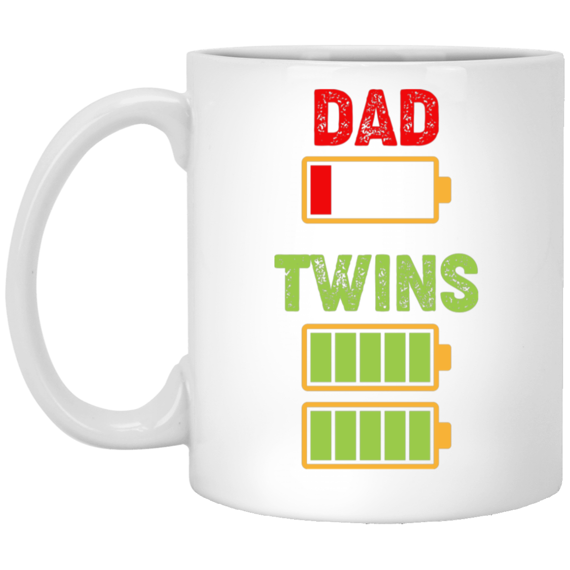 Dad Of Twins, Father's Day Gift, Dad Out Of Battery White Mug
