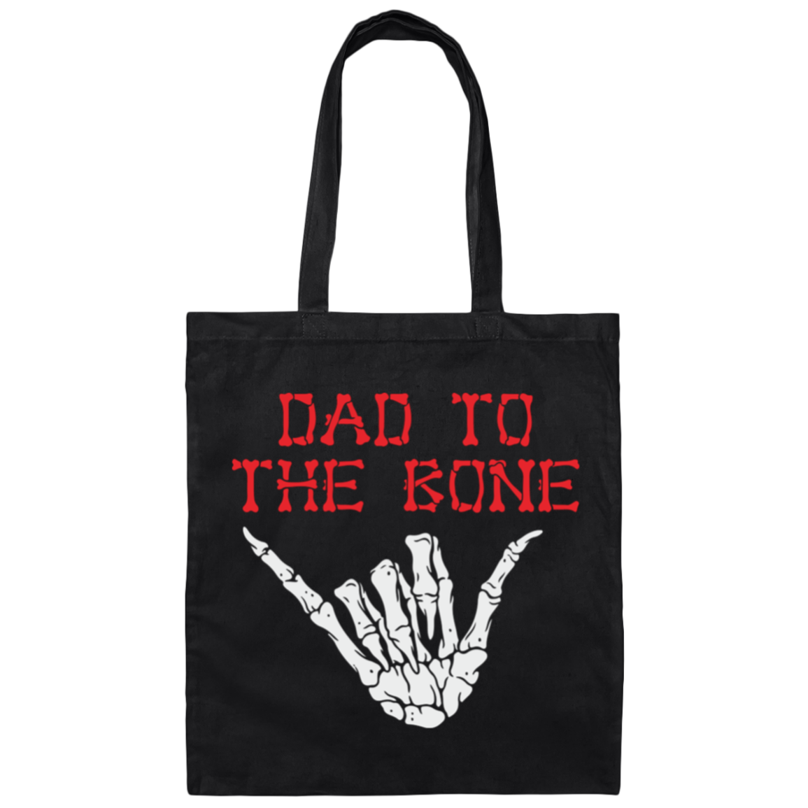 Dad To The Bone, Spooky Skeleton Hand, Funny Halloween, Trendy Halloween Canvas Tote Bag