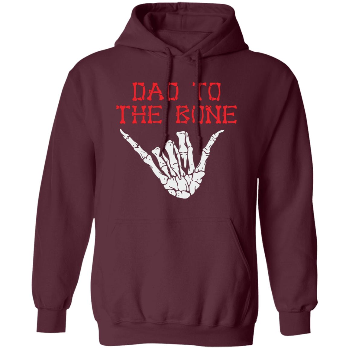 This Dad To The Bone pullover hoodie is sure to make a statement this Halloween. Features a trendy spooky skeleton hand design that's sure to add some fun and humor to your wardrobe.