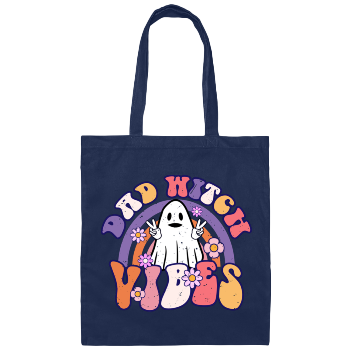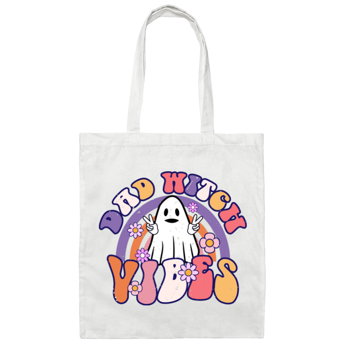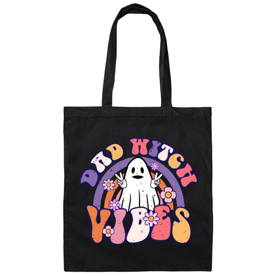 Dad Witch Vibes, Ghost Halloween, Groovy Halloween Canvas Tote Bag