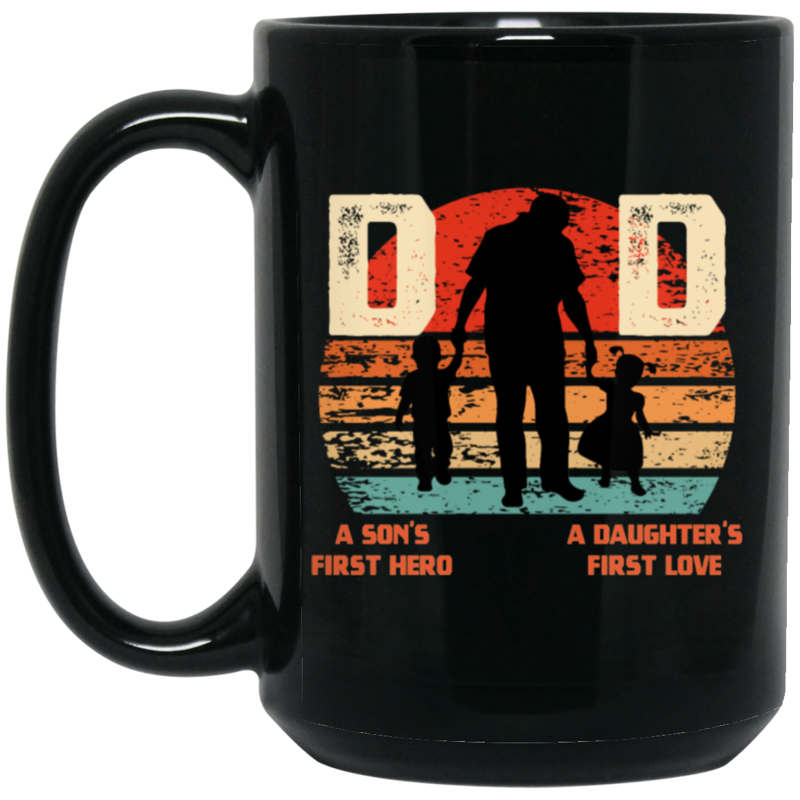 Daddy Gift, Dad Is A Son's First Hero, A Daughter's First Love, Best Dad Black Mug