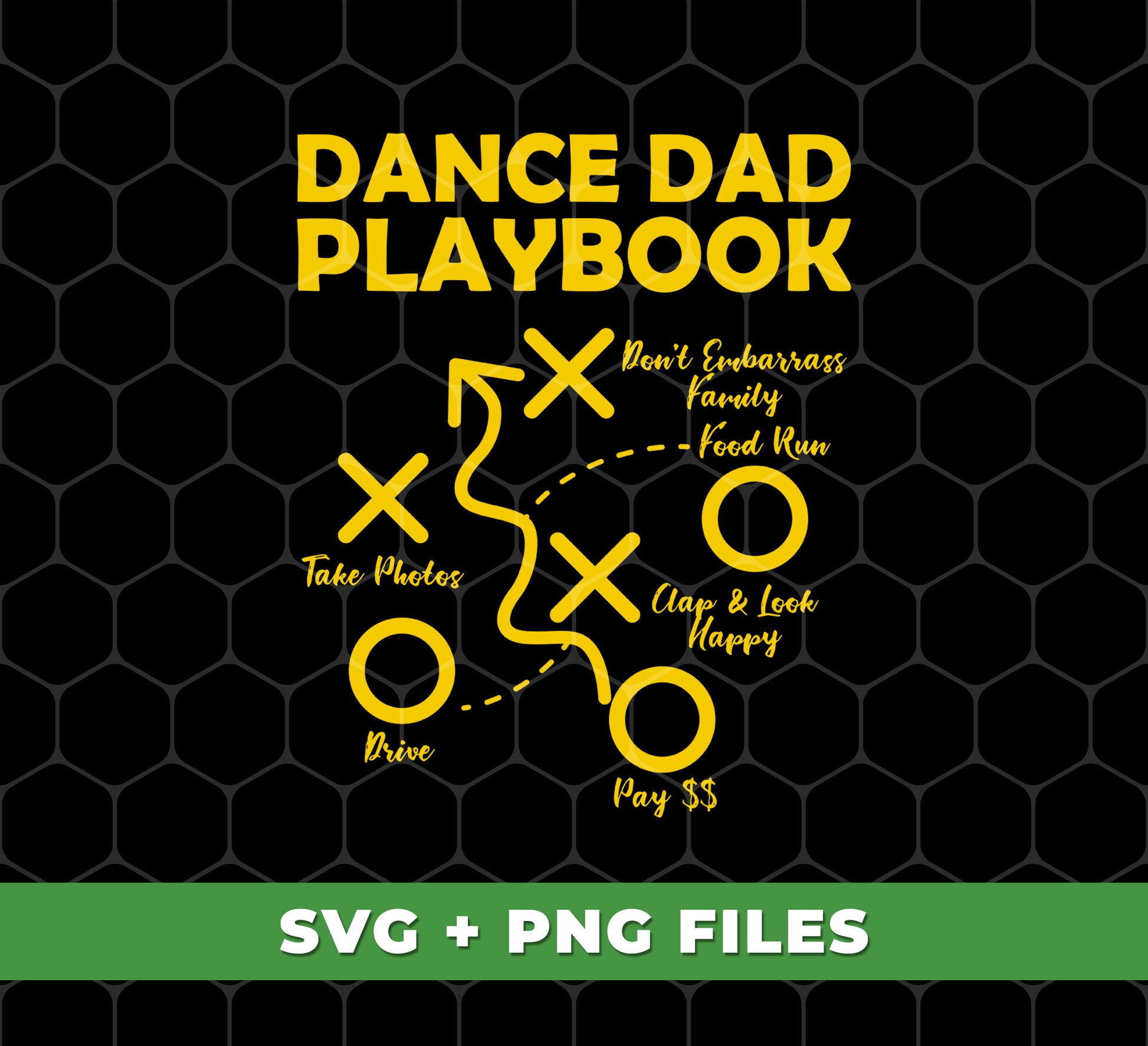 Learn how to be a confident and supportive dance dad with the Dance Dad Playbook. Avoid embarrassing moments and showcase your love for your dancer with this digital file, available now in high-quality PNG sublimation!