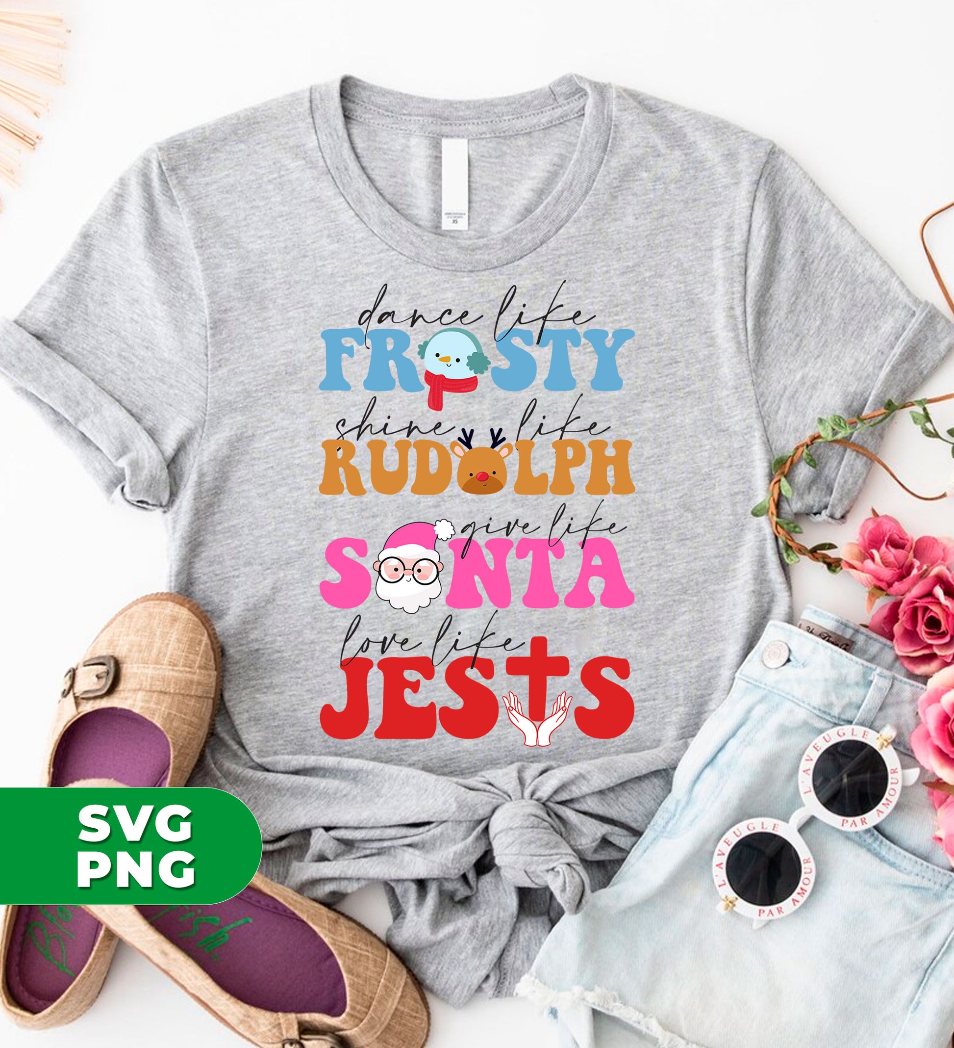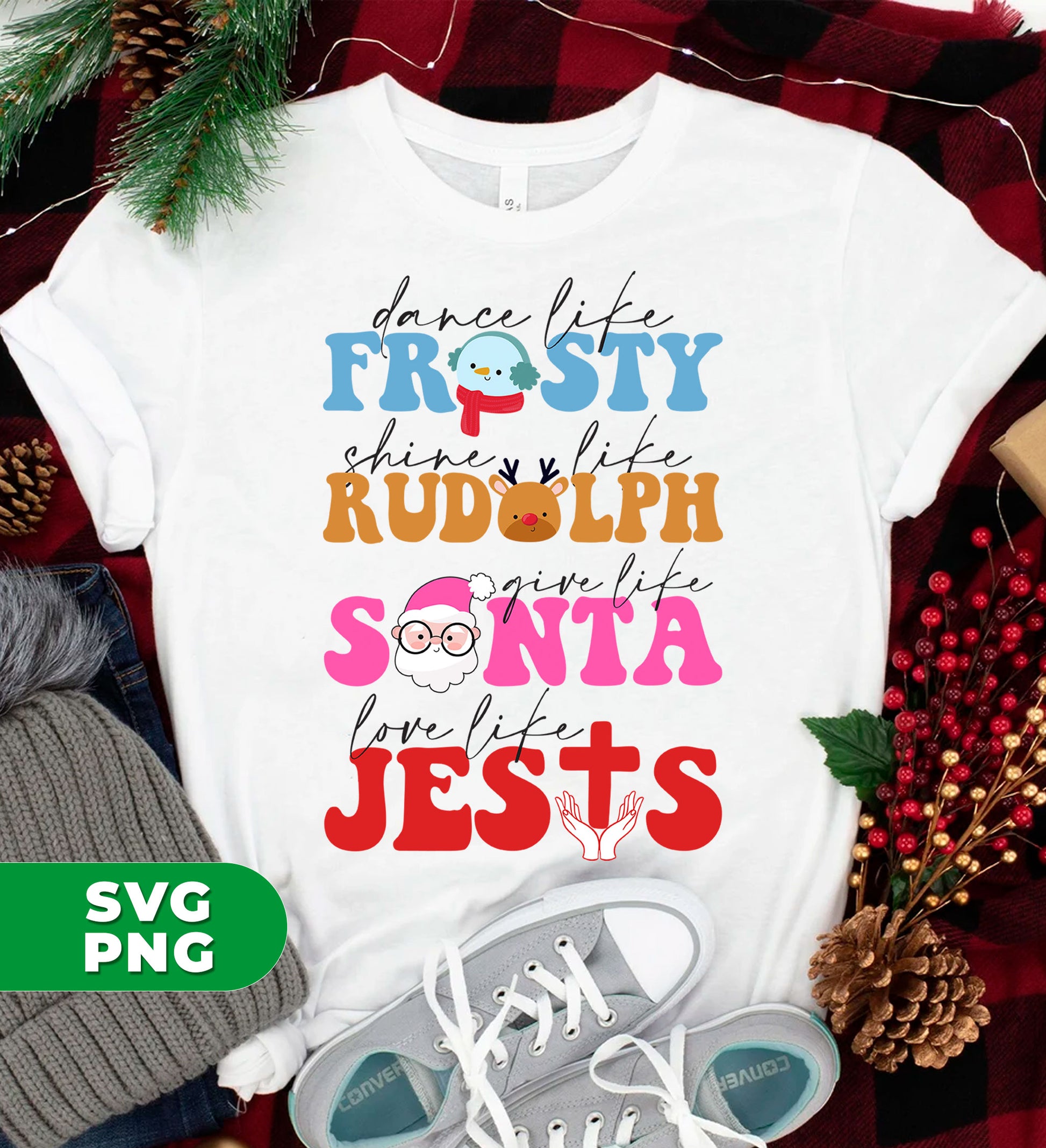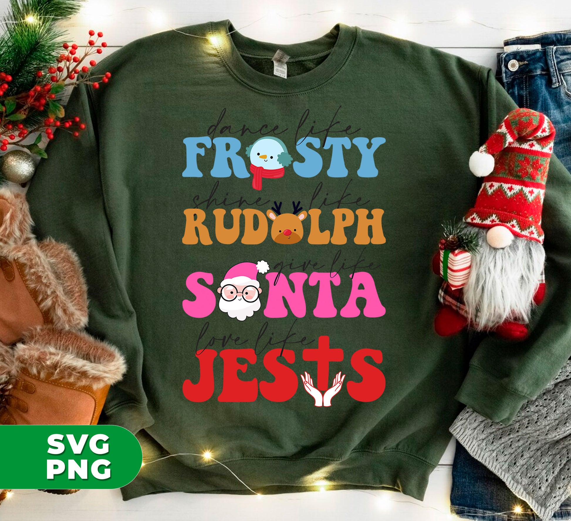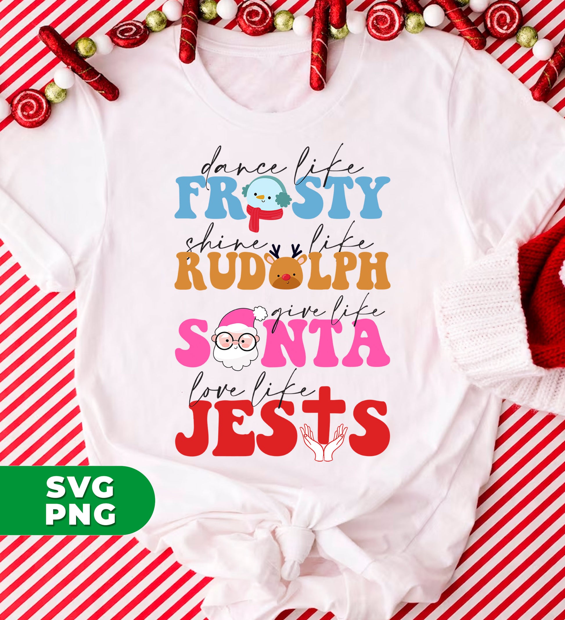 Dance Like Frosty, Shine Like Rudolph, Give Like Santa, Love Like Jesus, Digital Files, Png Sublimation
