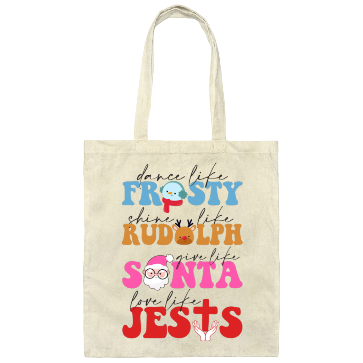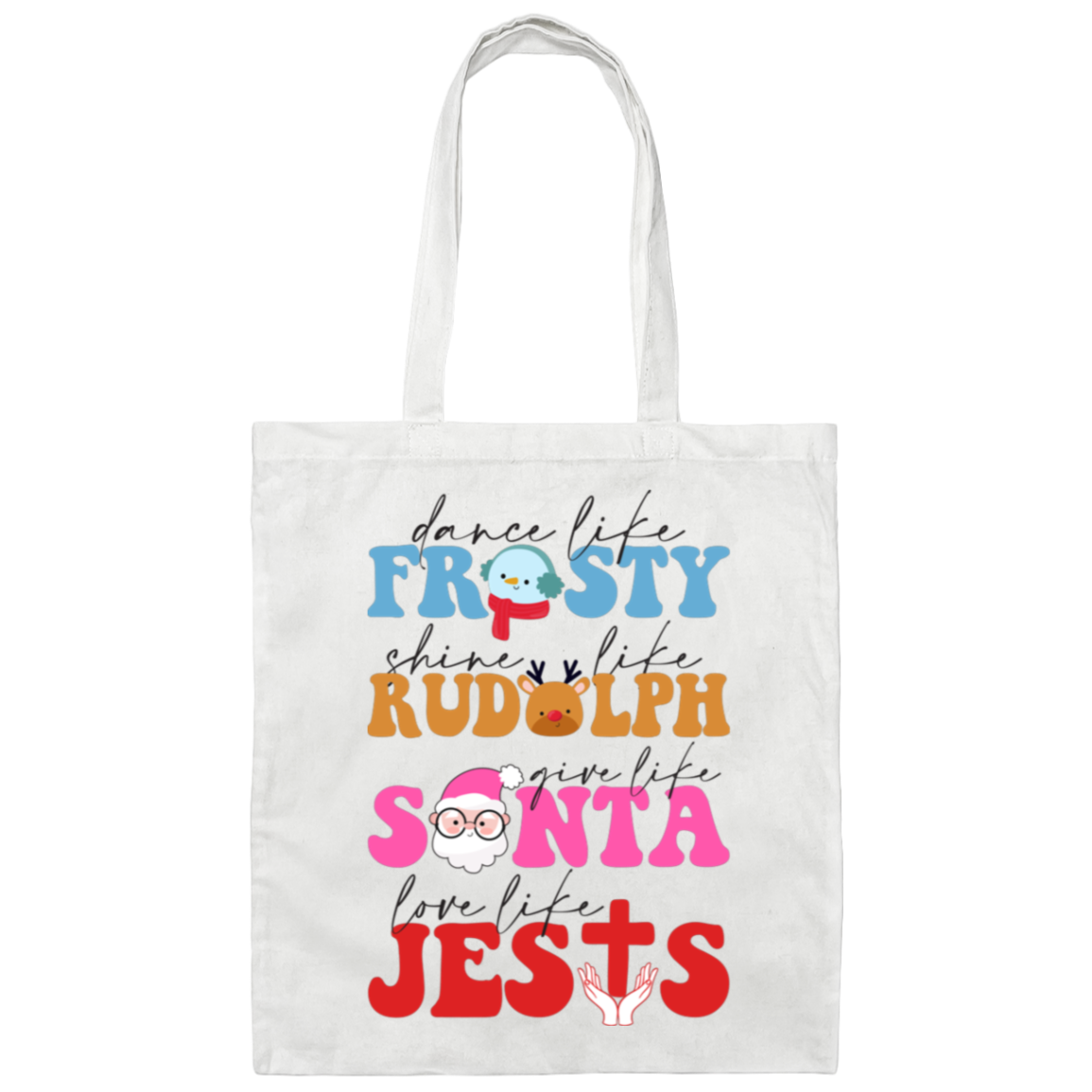Dance Like Frosty, Shine Like Rudolph, Give Like Santa, Love Like Jesus, Merry Christmas, Trendy Chrismas Canvas Tote Bag
