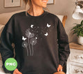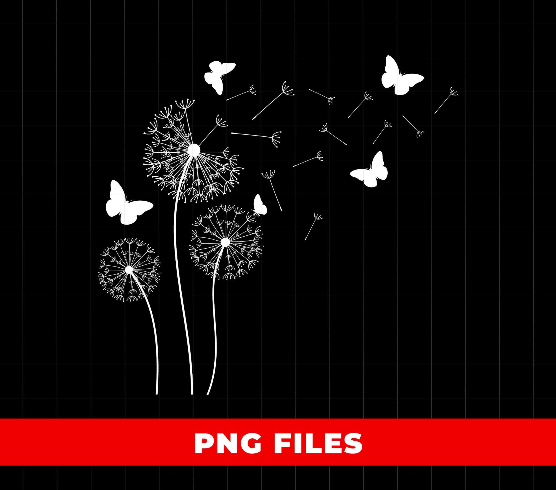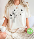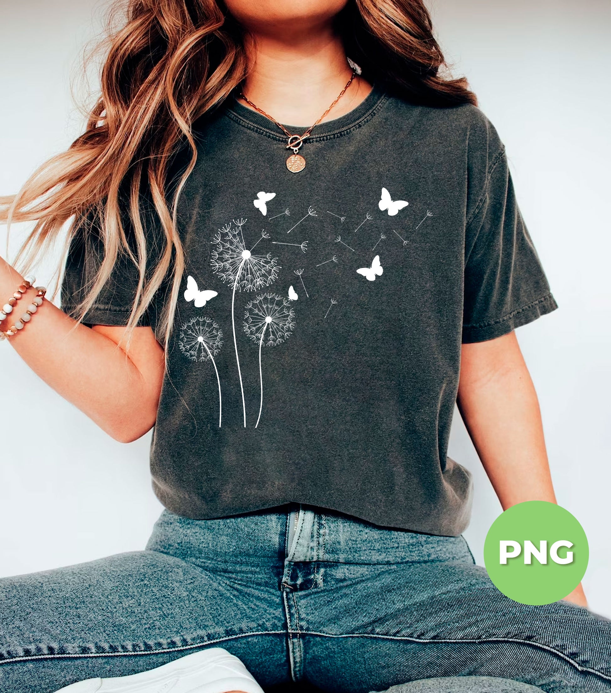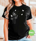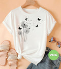 Dandelion With Butterflies PNG, Floral T Shirt Design, Botanical Digital Download, Minimalist Flower Art, Nature Sublimation Graphic