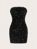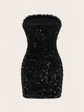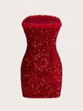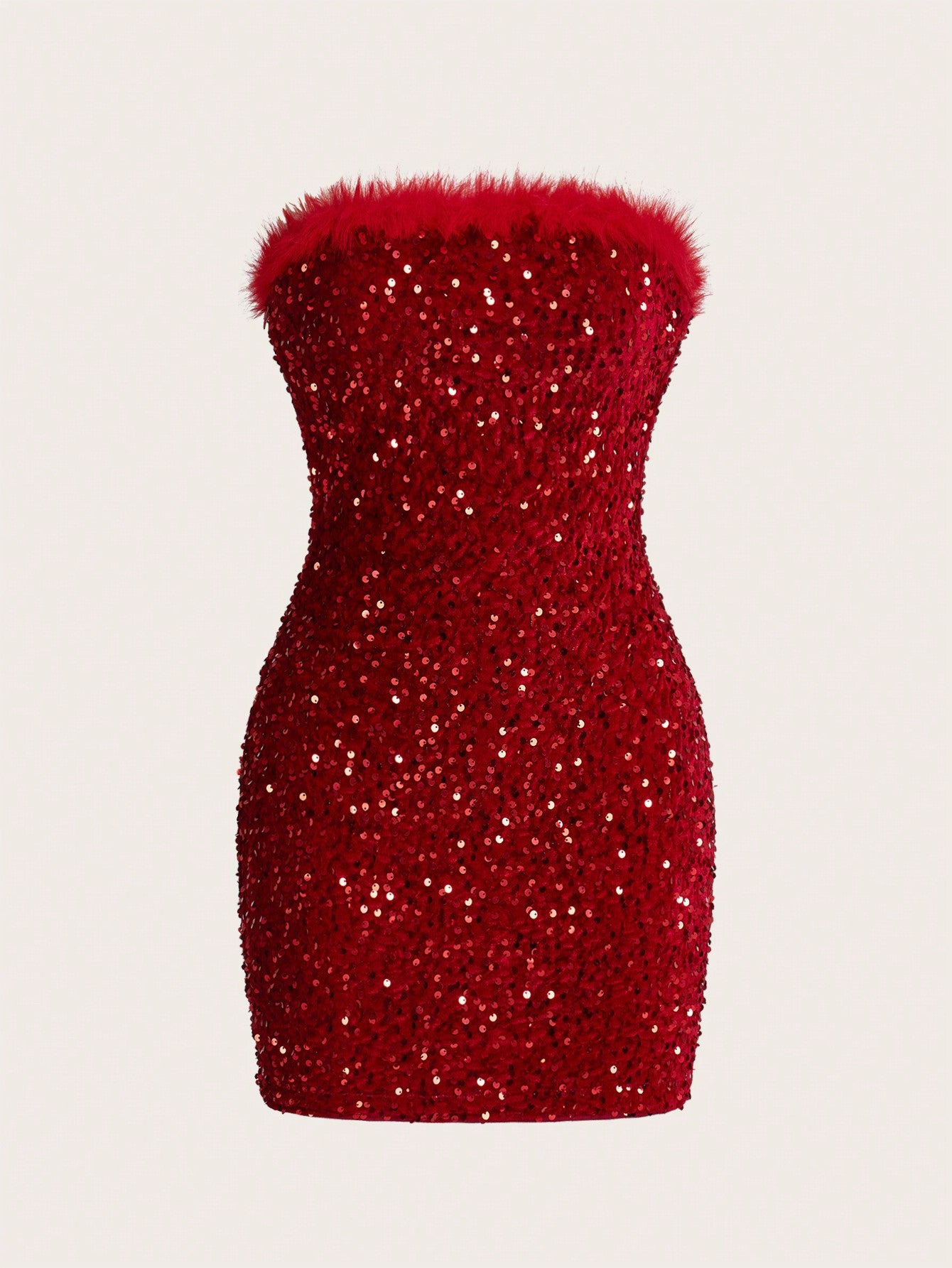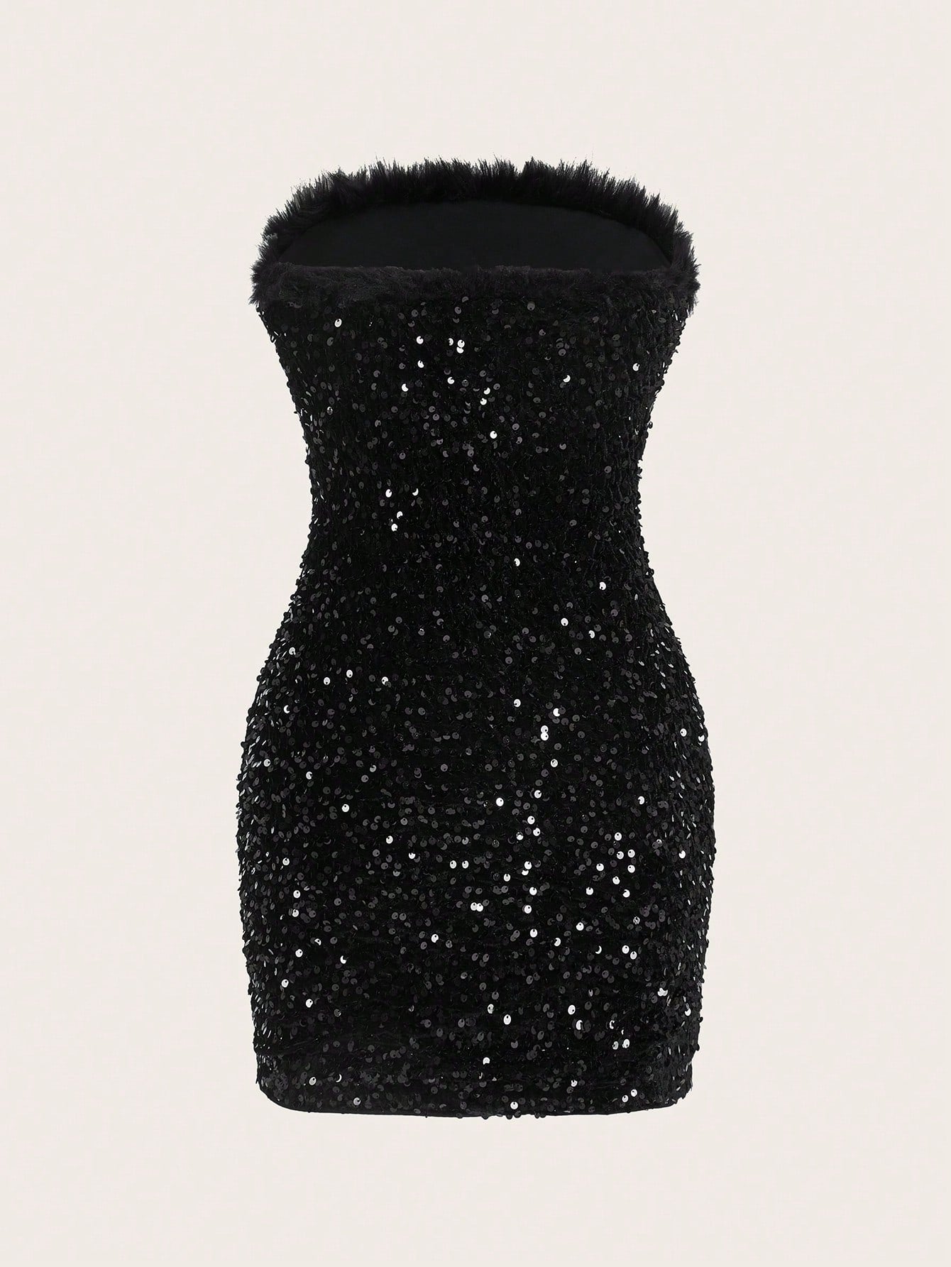 Dazzling Confidence: Fuzzy Trim Sequin Tube Dopamine Bodycon Dress