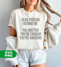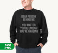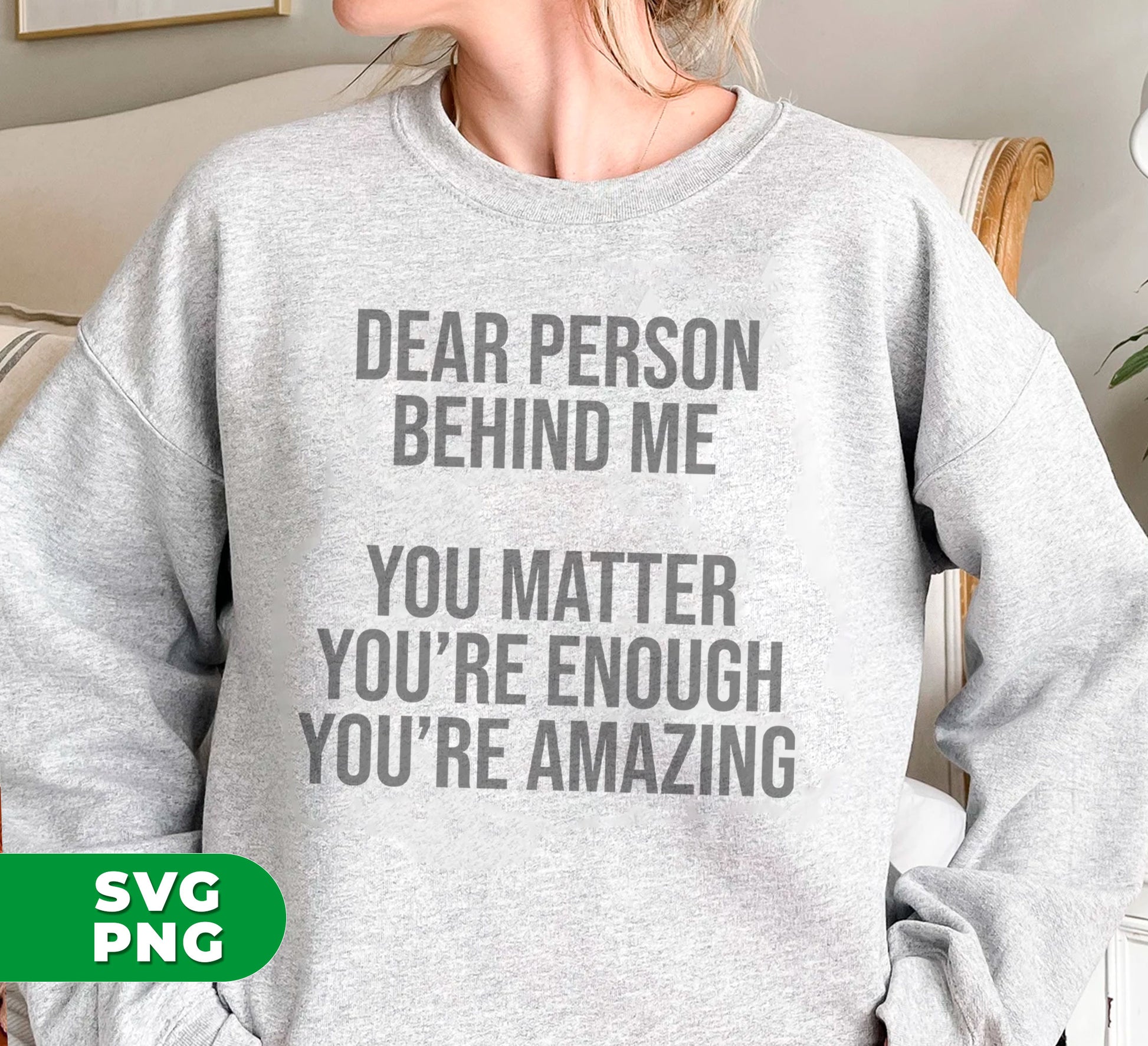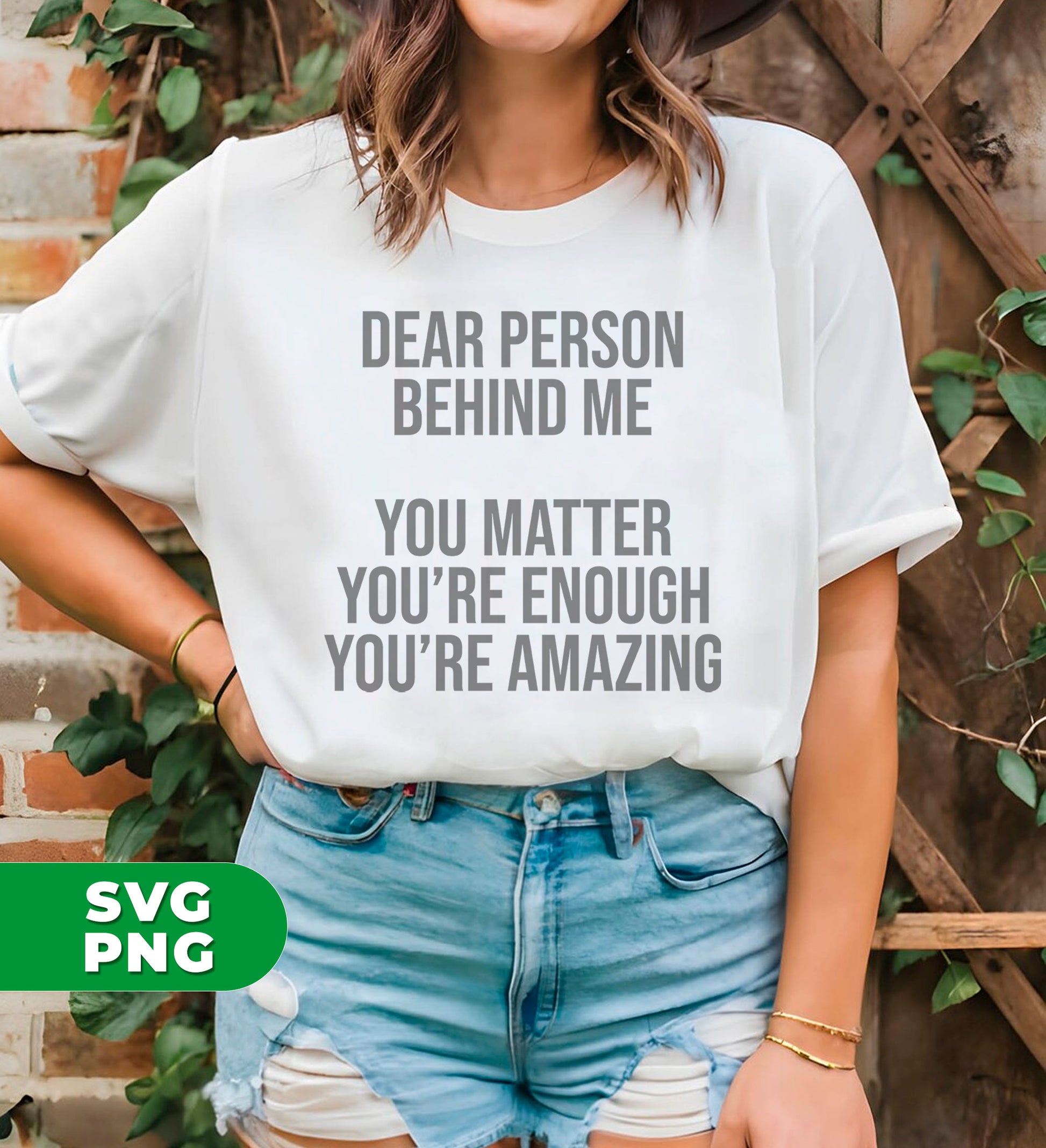 Dear Person Behind Me, You Matter, You're Enough, You're Amazing, Digital Files, Png Sublimation