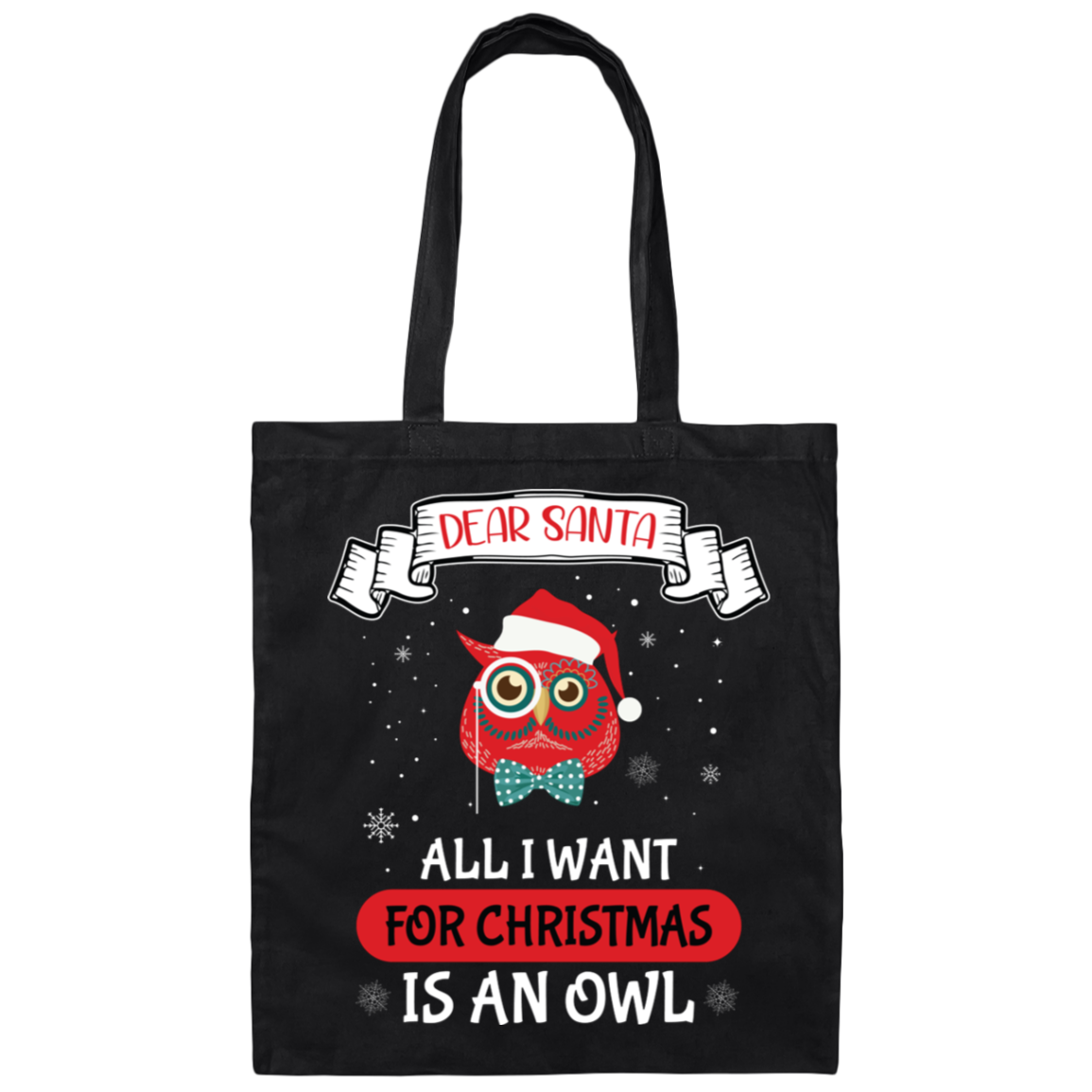 Dear Santa, All I Want For Christmas Is An Owl, Merry Xmas Canvas Tote Bag