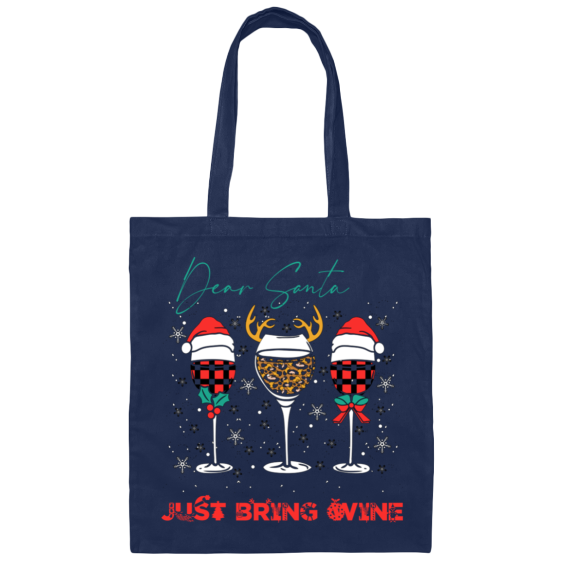 Dear Santa, Just Bring Wine, Caro Pattern, My Christmas Canvas Tote Bag
