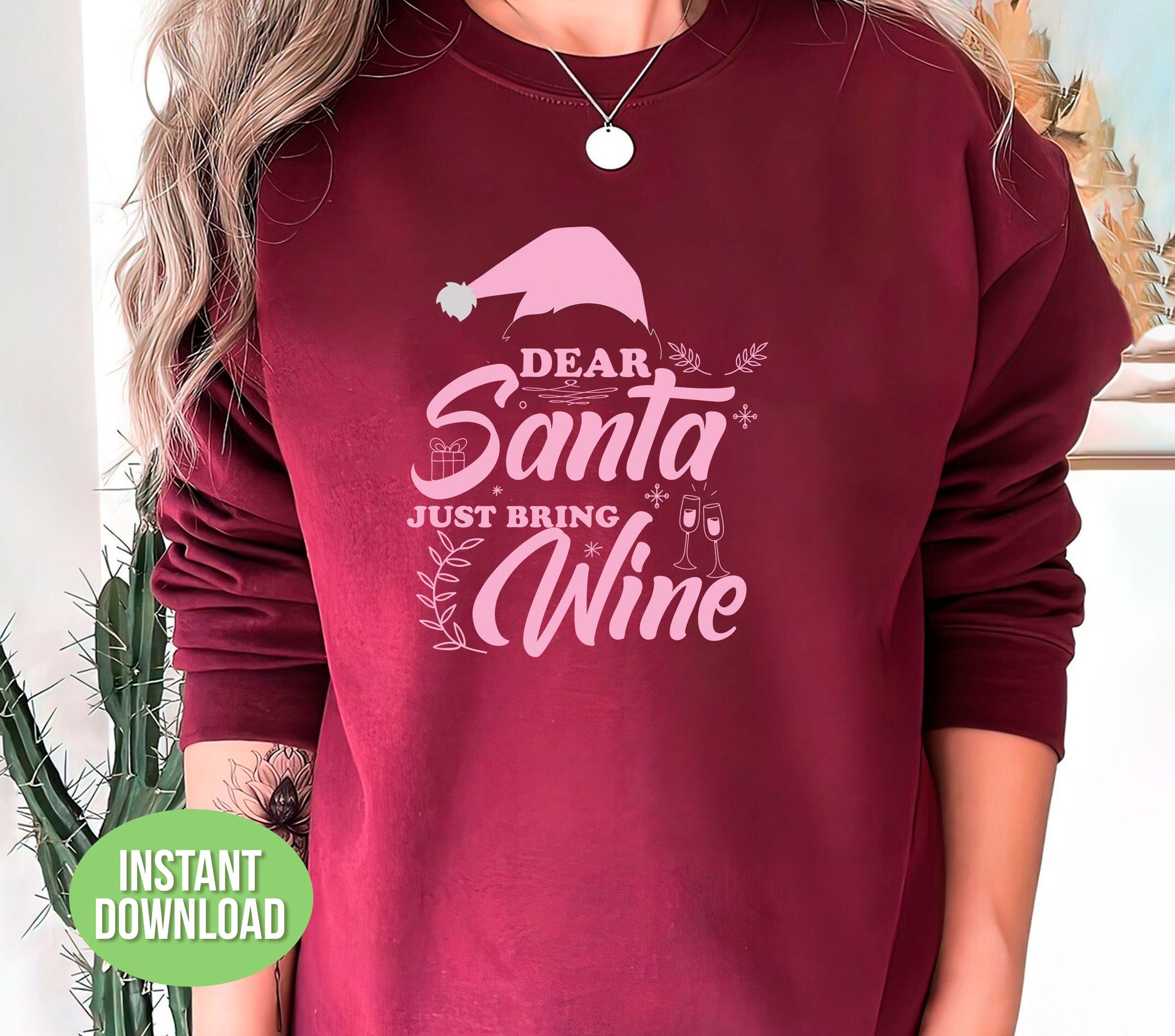 Dear Santa, Just Bring Wine, Love WIn, Get Lit In Xmas, Svg Files, Png Sublimation