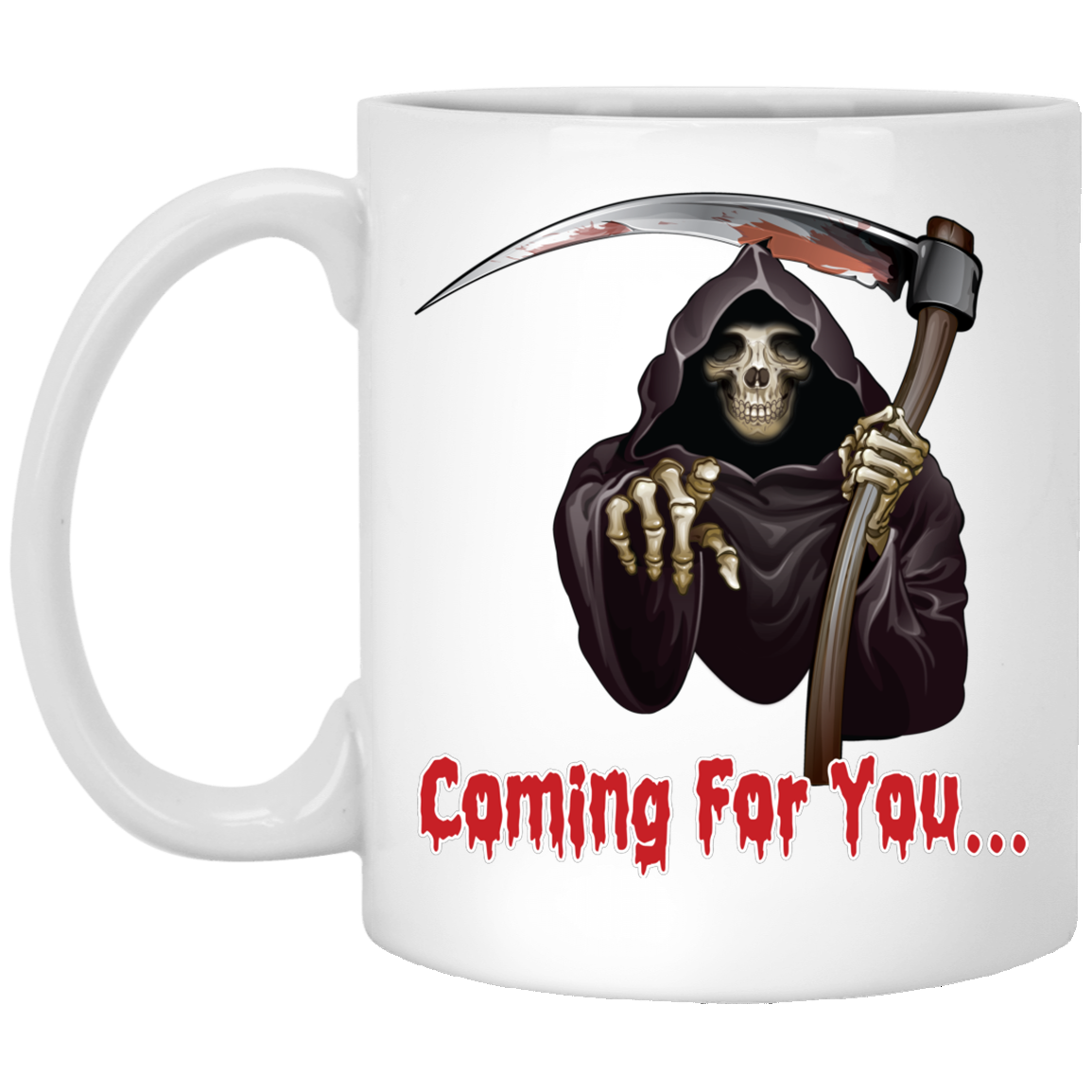 Death Is Coming For You, Horror Halloween, Funny Death White Mug