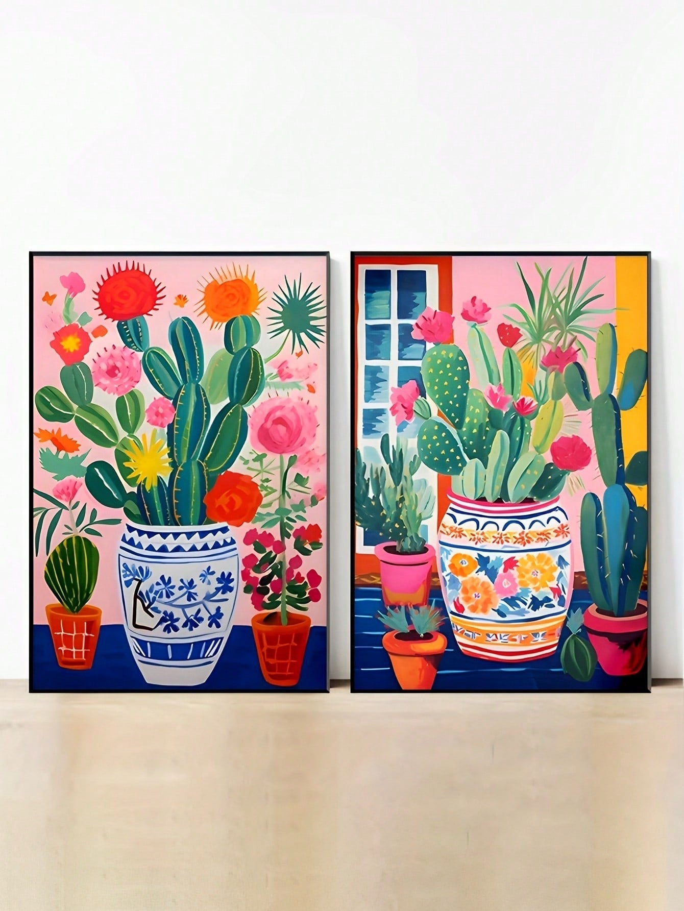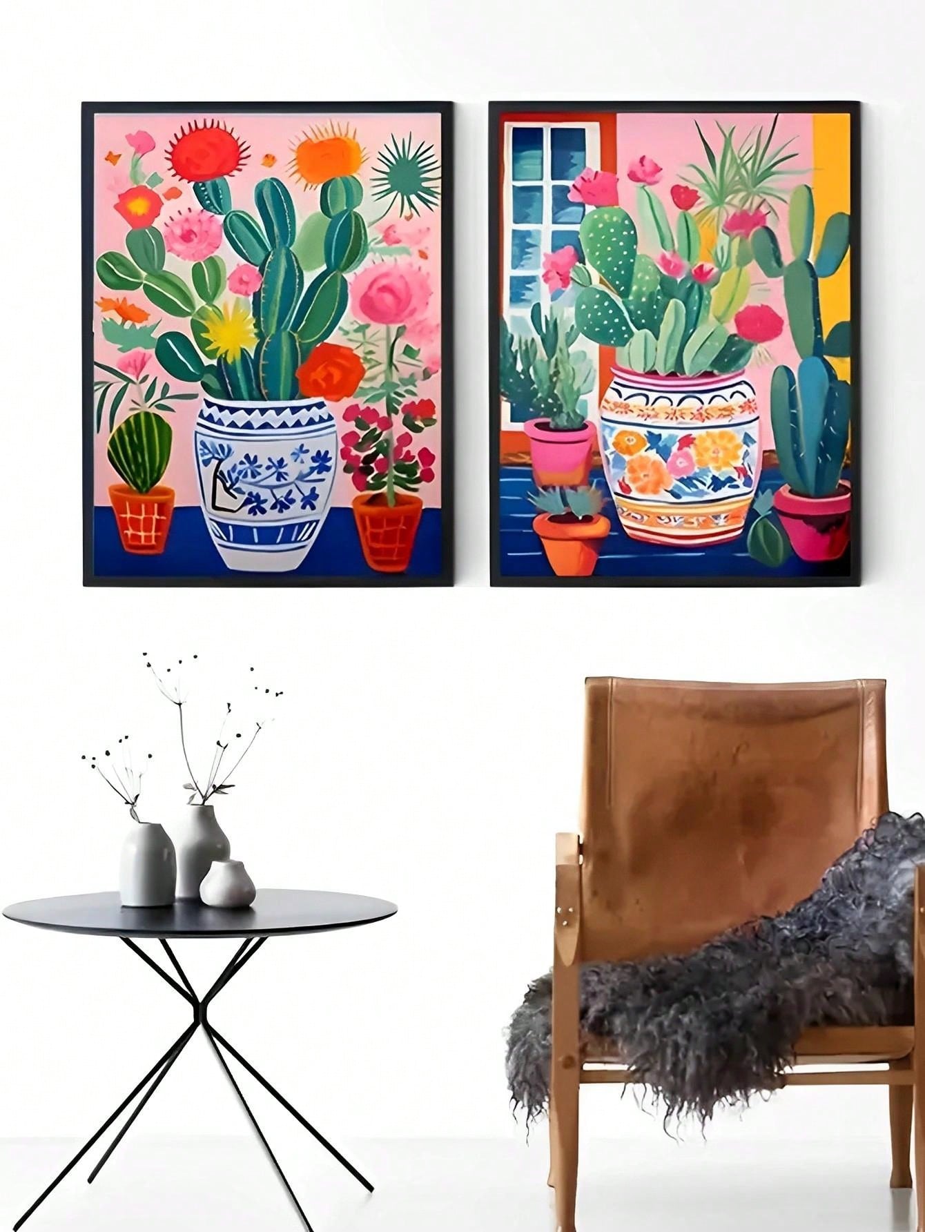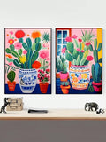 Desert Dreams: Cactus Illustration Canvas Wall Art Set for Any Space