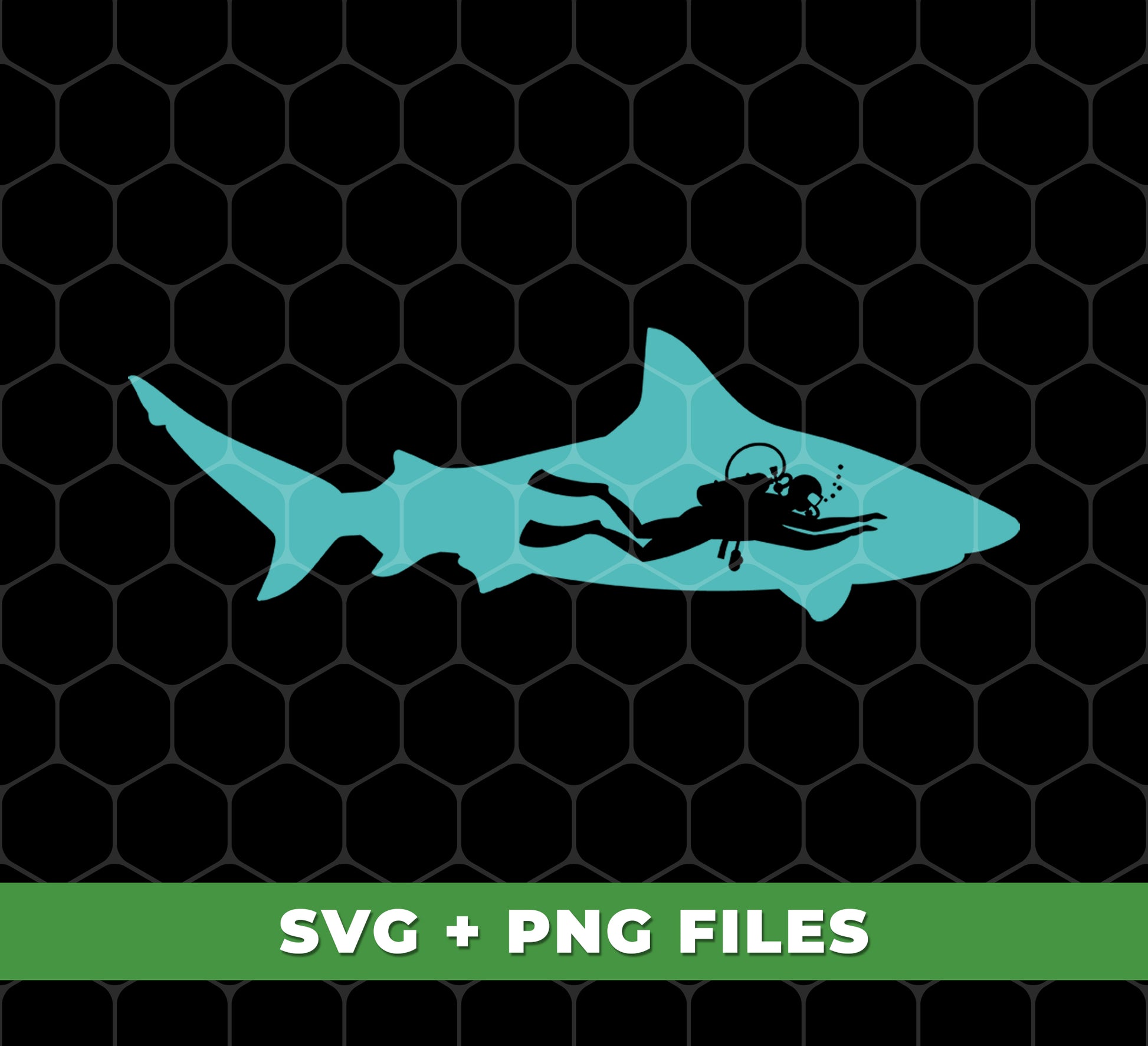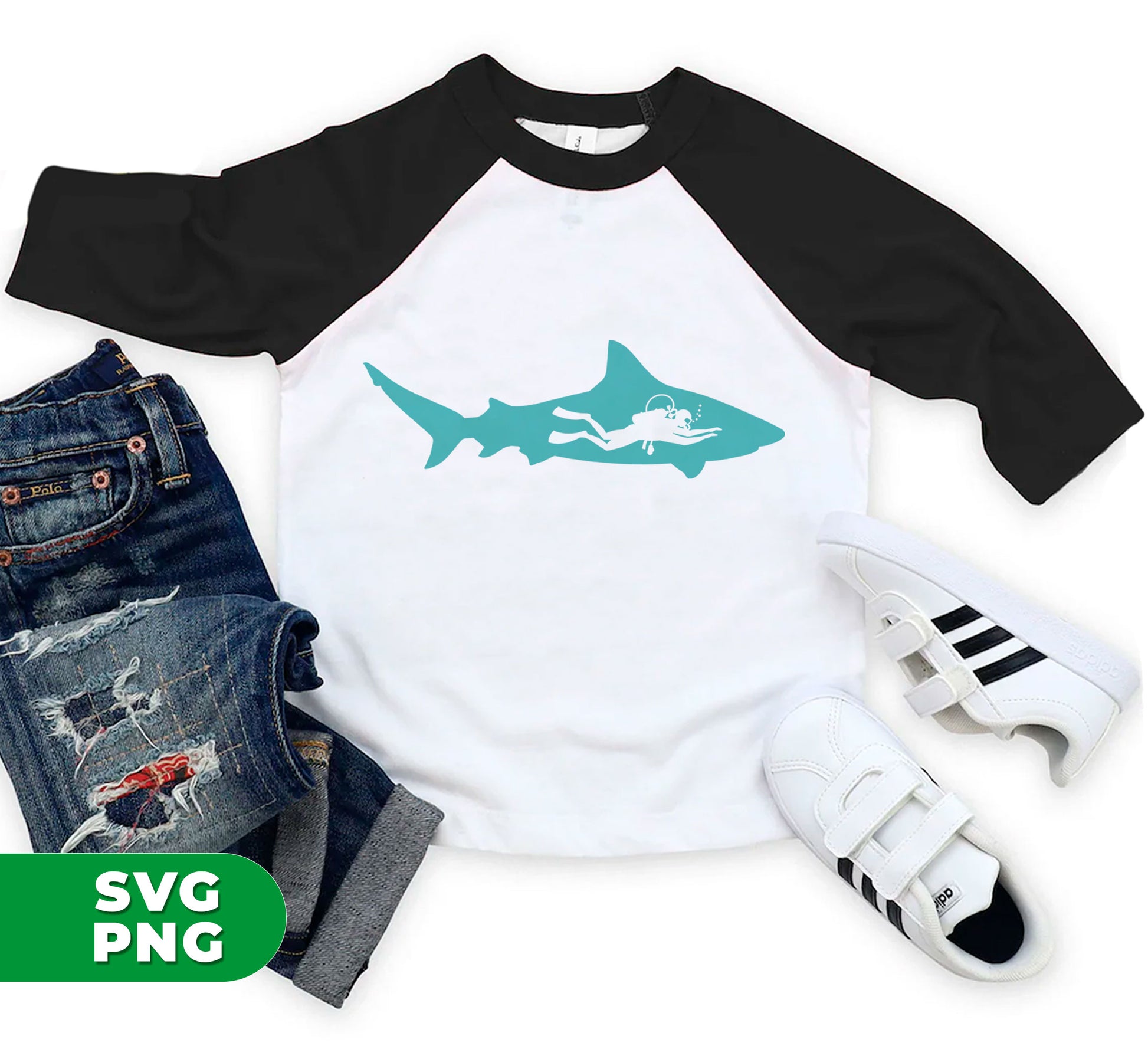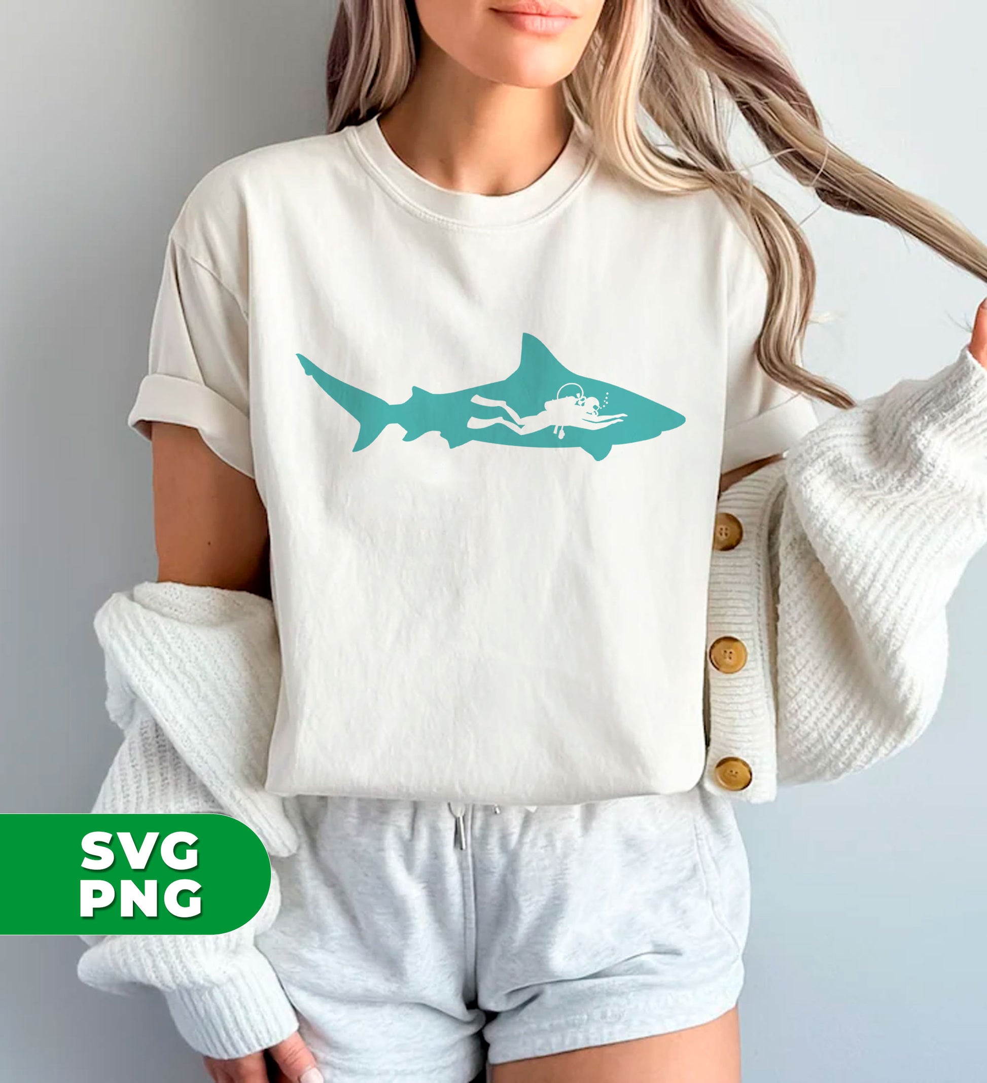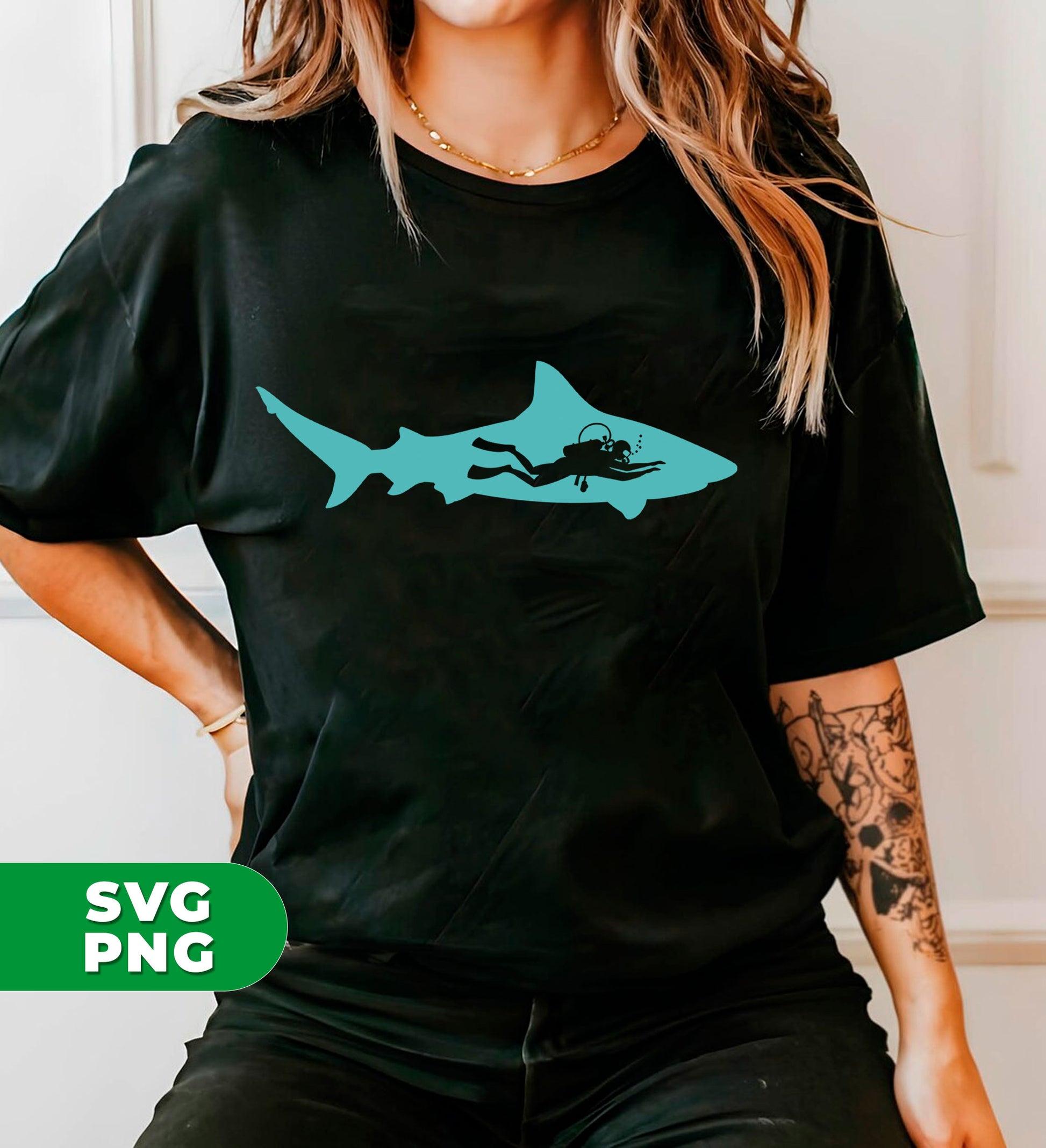 Diving Gift, Diving Silhouette, Shark Lover, Diver Gift, Digital Files, Png Sublimation
