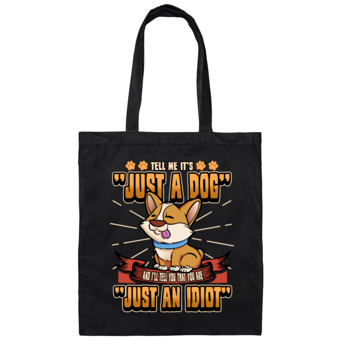 Dog Owner Gift, Dog Lover Gift, Funny Dog, Just A Dog, Just An Idiot Canvas Tote Bag