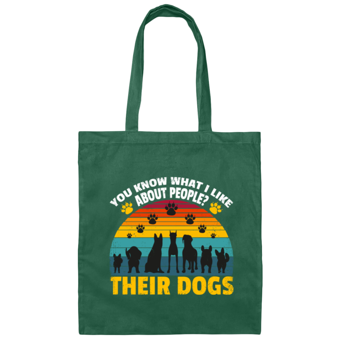 Dogs Lover Retro Gift, You Know What I Like About People, I Like Their Dogs Canvas Tote Bag