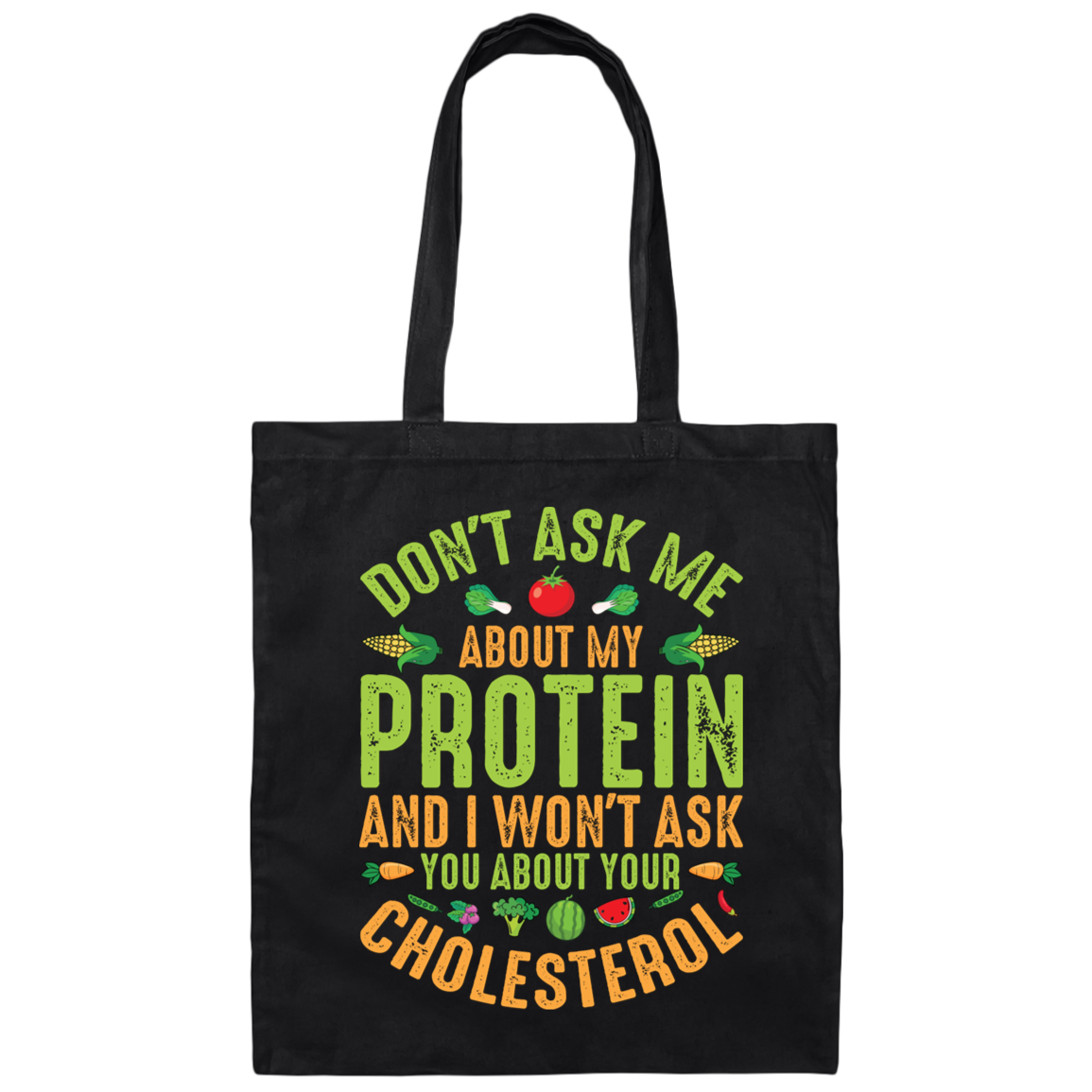 Don't Ask Me About My Protein, I Won't Ask You About Your Cholesterol Canvas Tote Bag