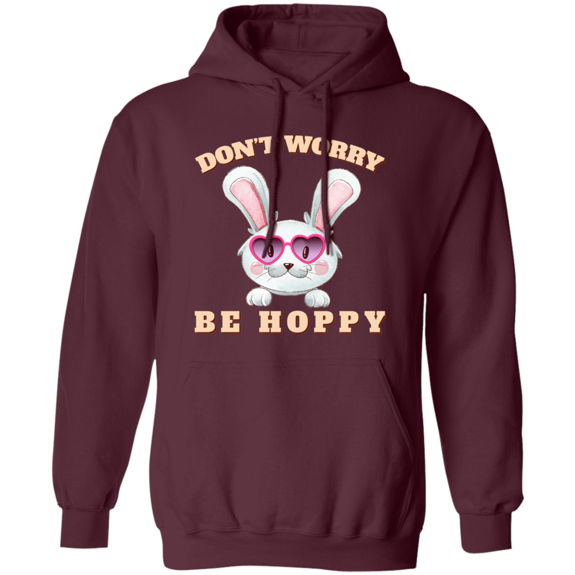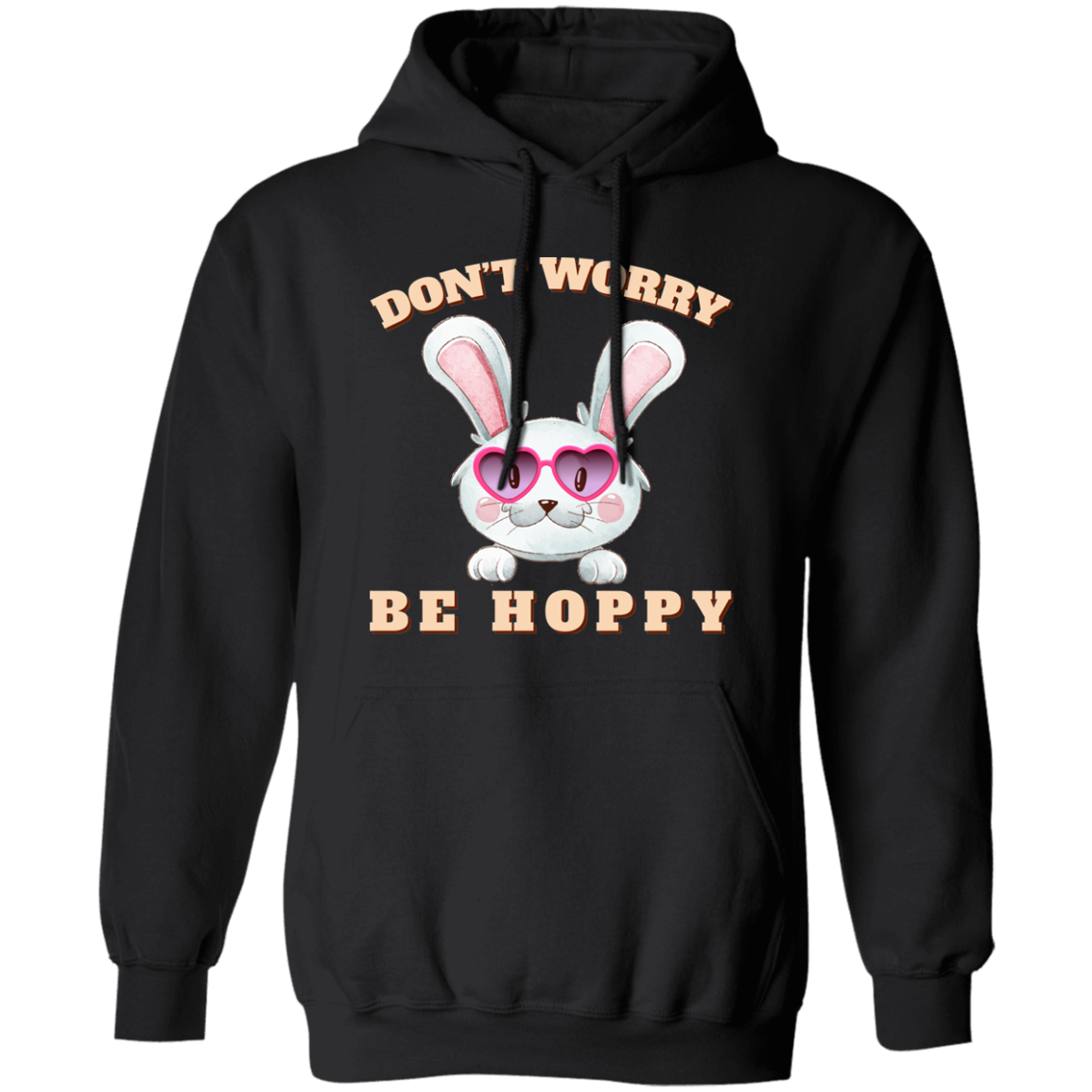 Don't Worry, Be Hoppy, Rabbit Wear Heart Glasses Pullover Hoodie