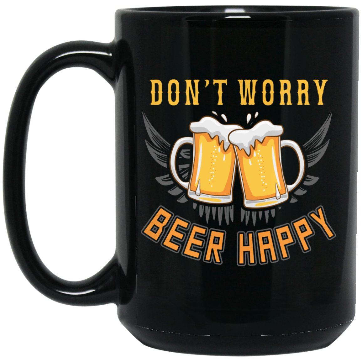 Don't Worry, Beer Happy, Cheer Up, Beer Retro Black Mug
