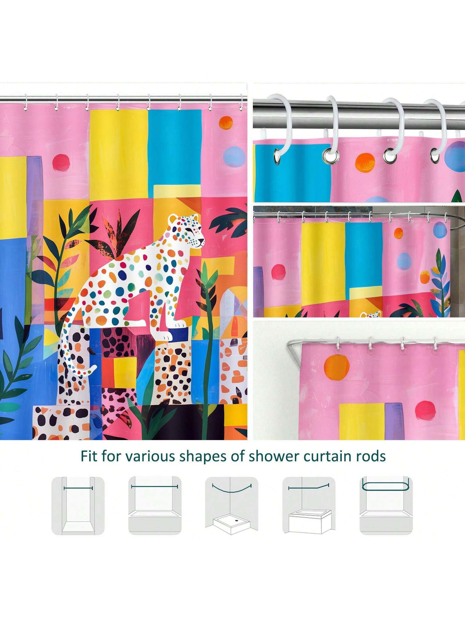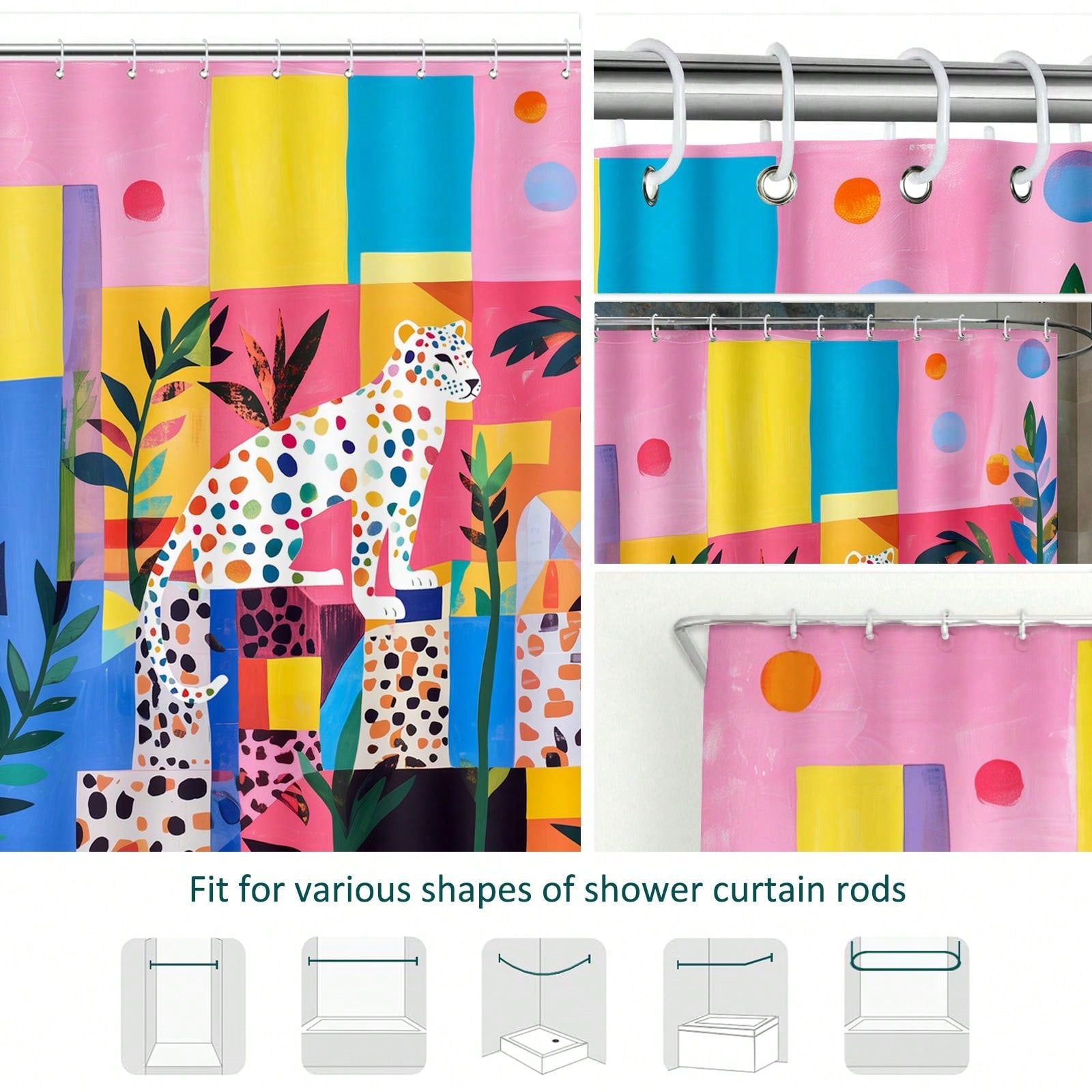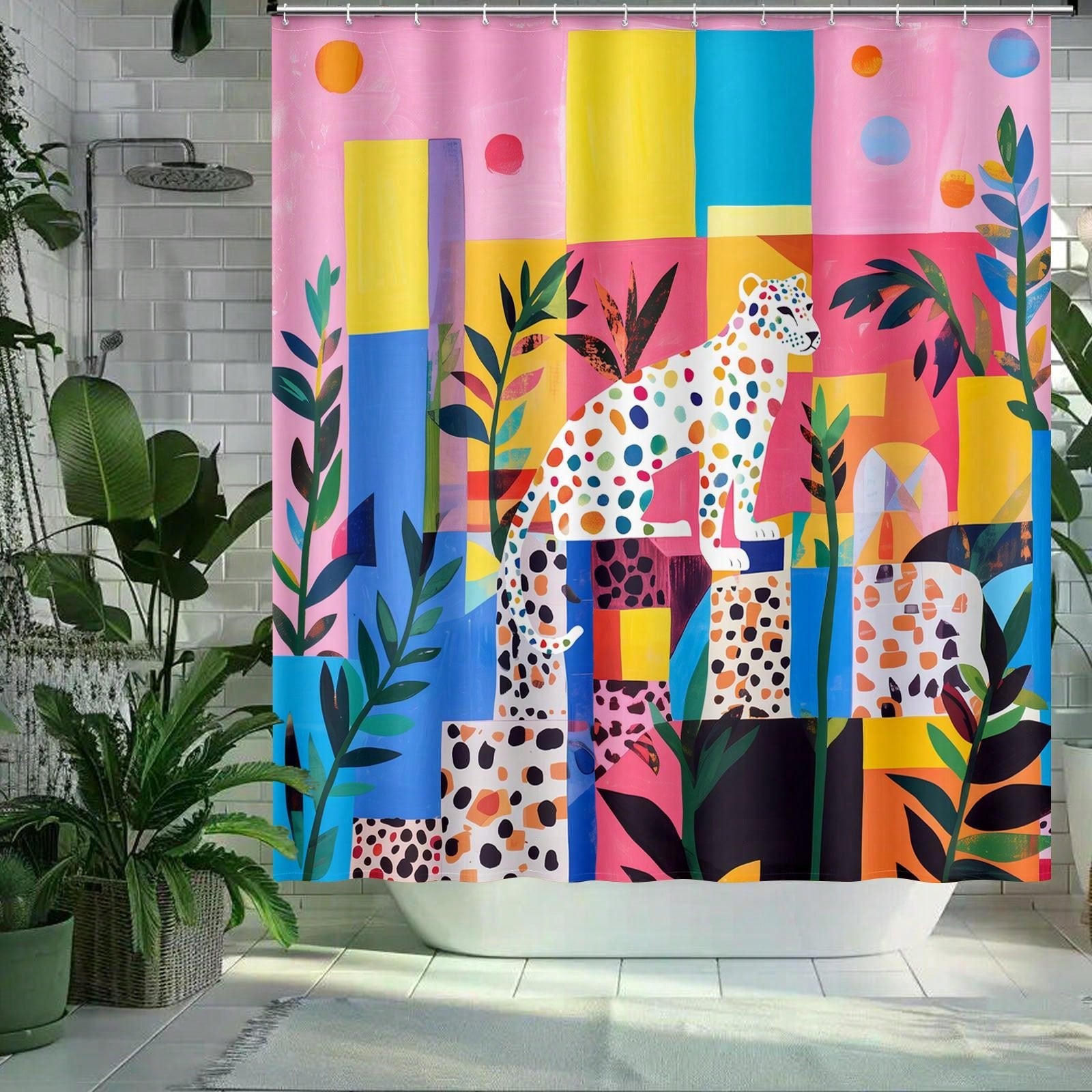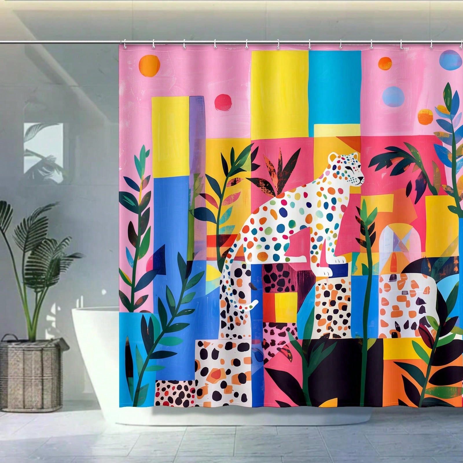 Dopamine Dream: 72-Inch Geometric Polka Dot & Leopard Waterproof Shower Curtain with 12 Hooks