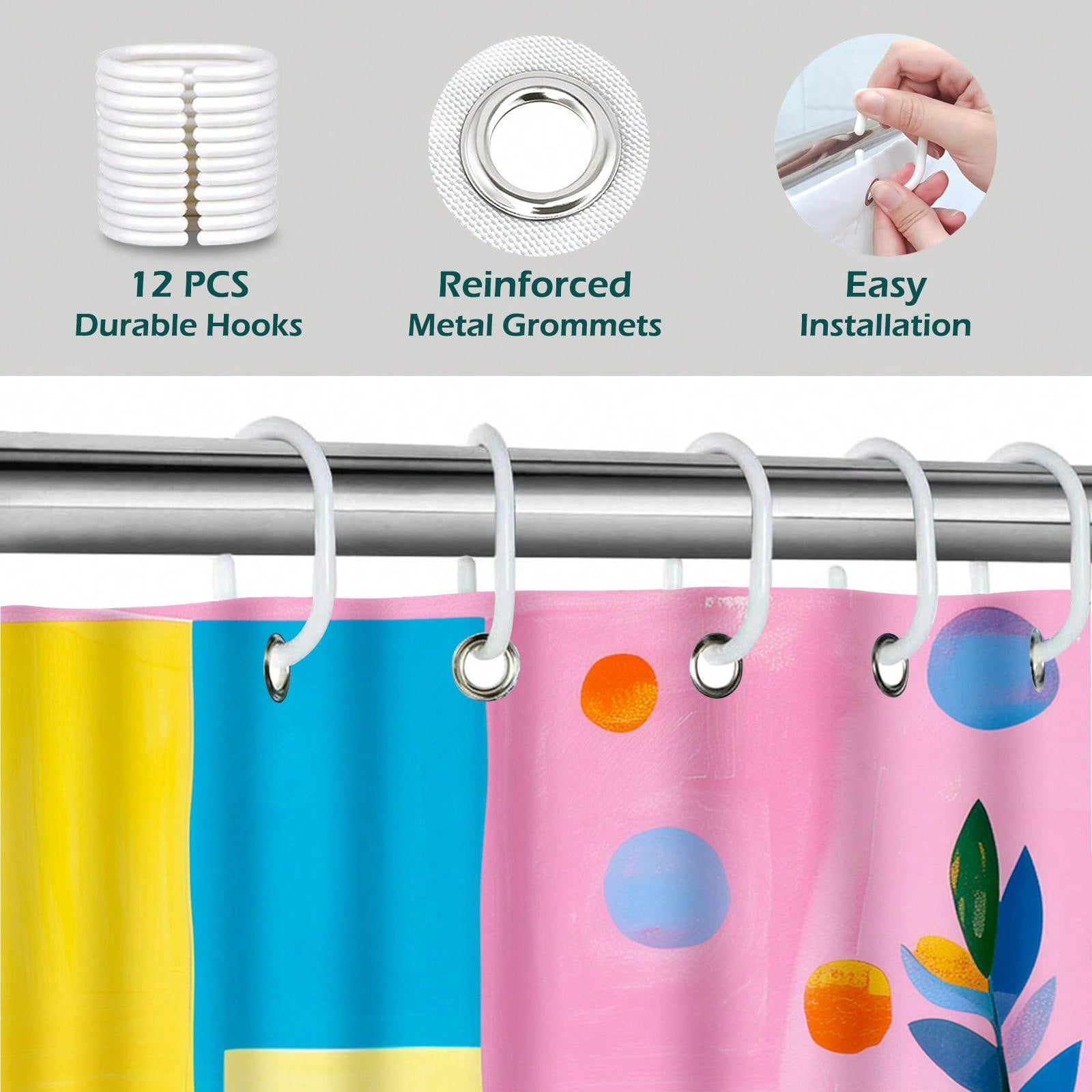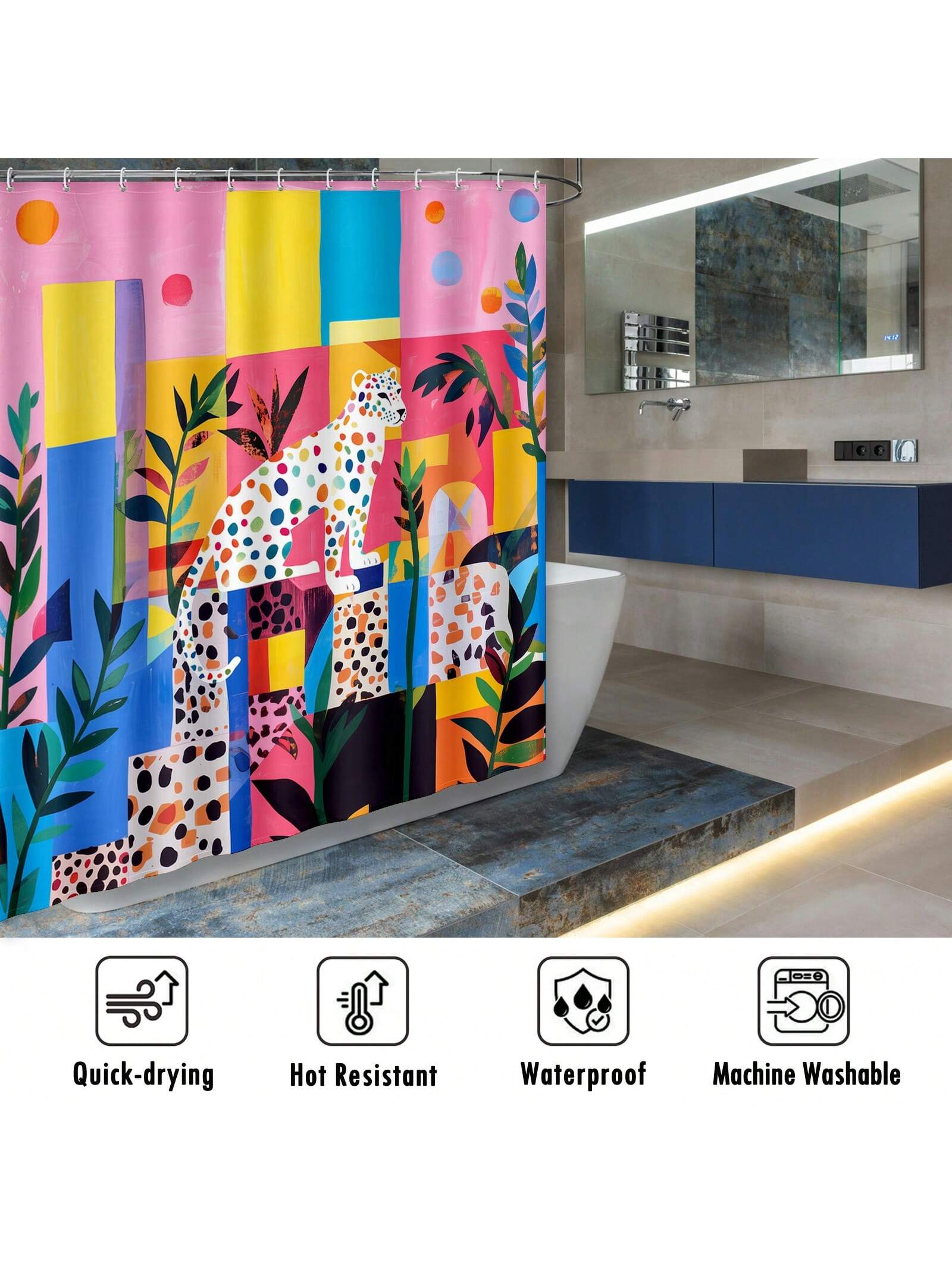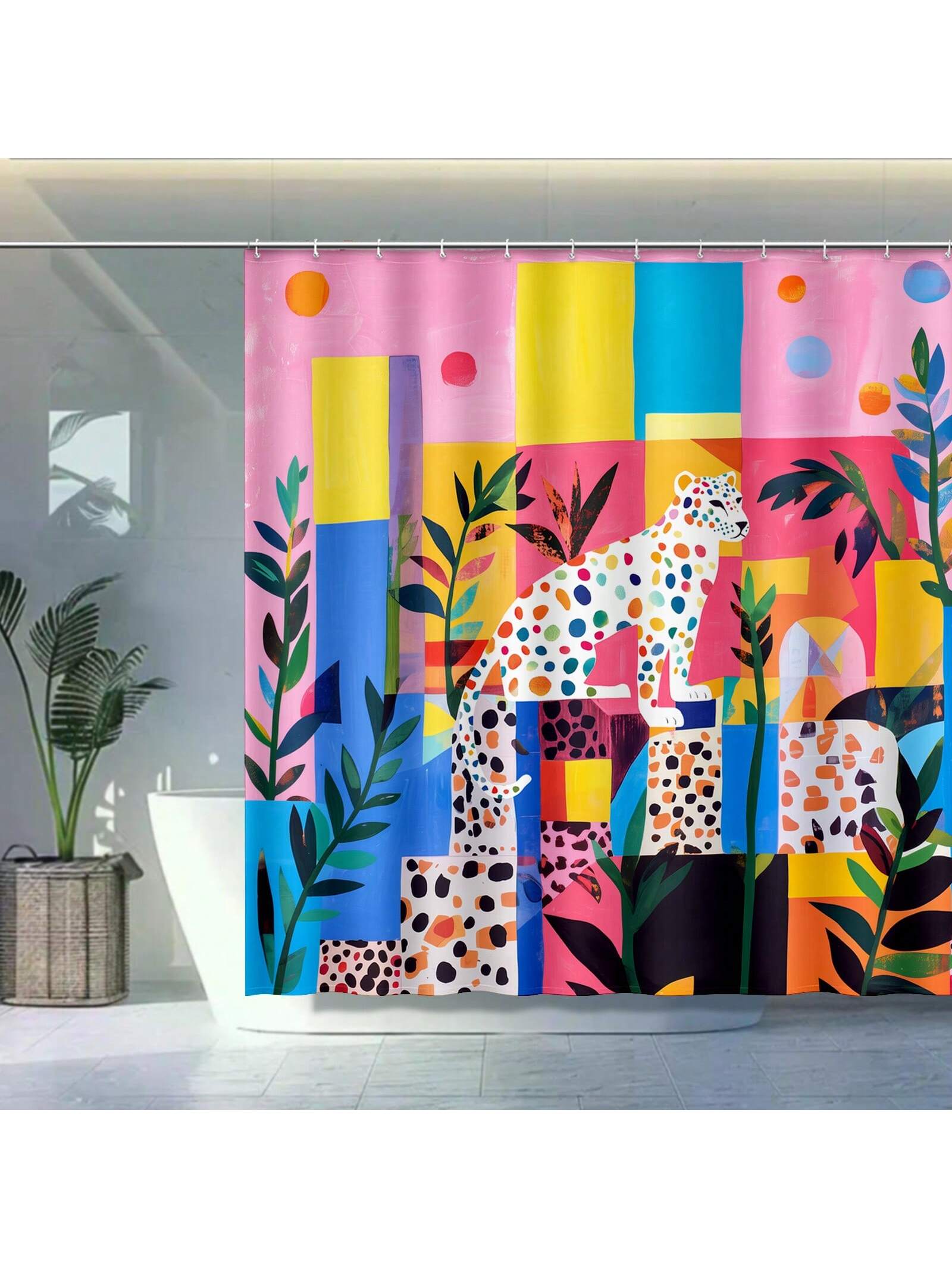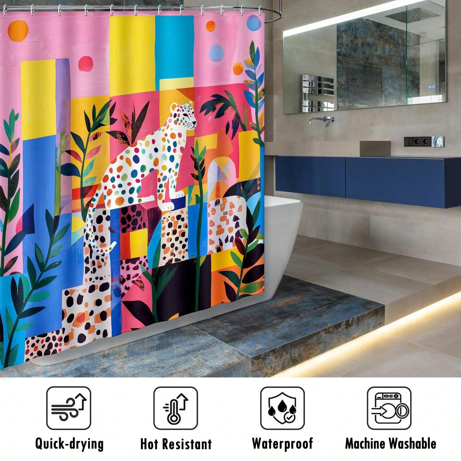 Dopamine Dream: 72-Inch Geometric Polka Dot & Leopard Waterproof Shower Curtain with 12 Hooks