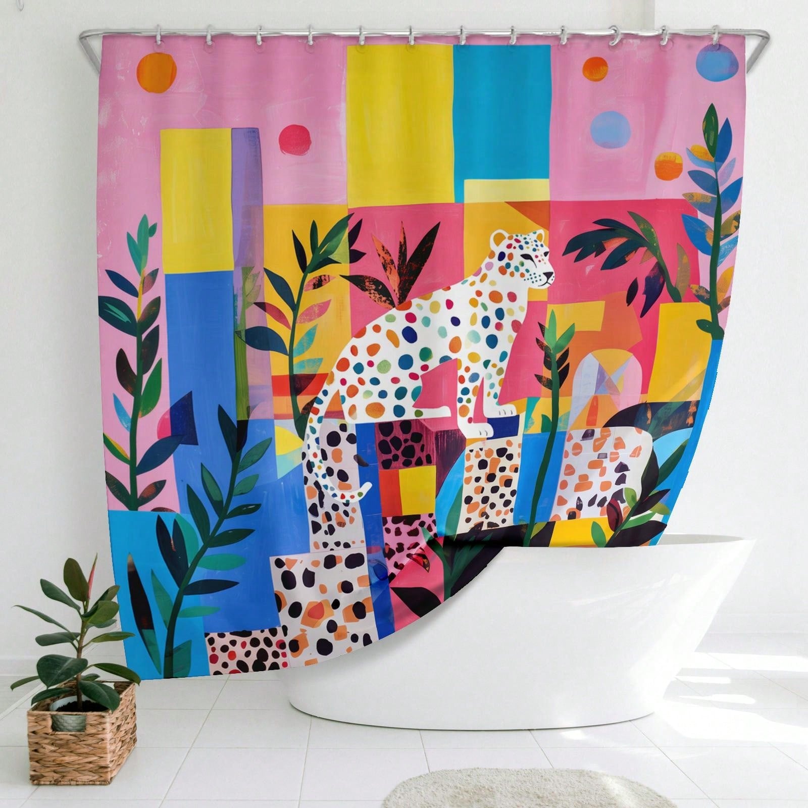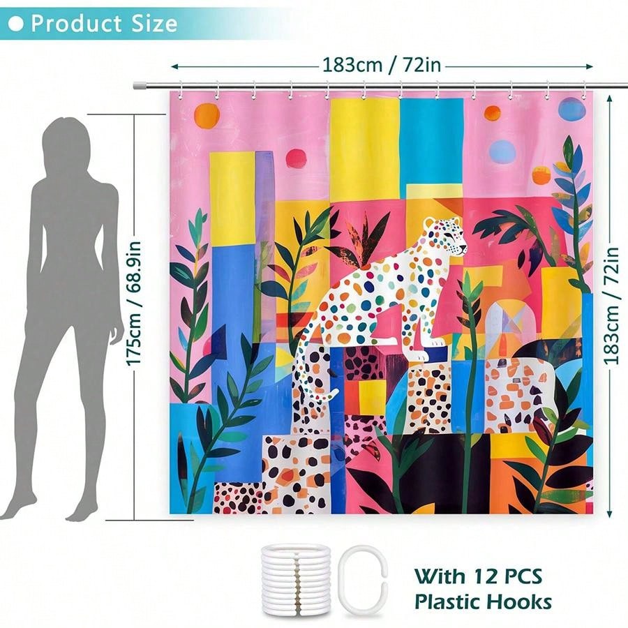 Experience the ultimate shower bliss with our Dopamine Dream shower curtain! Boasting a playful combination of geometric polka dots and fierce leopard print, this waterproof curtain is sure to add a bold and quirky touch to your bathroom. Plus, with 12 hooks included, installation is a breeze. Happiness and style await you with Dopamine Dream!