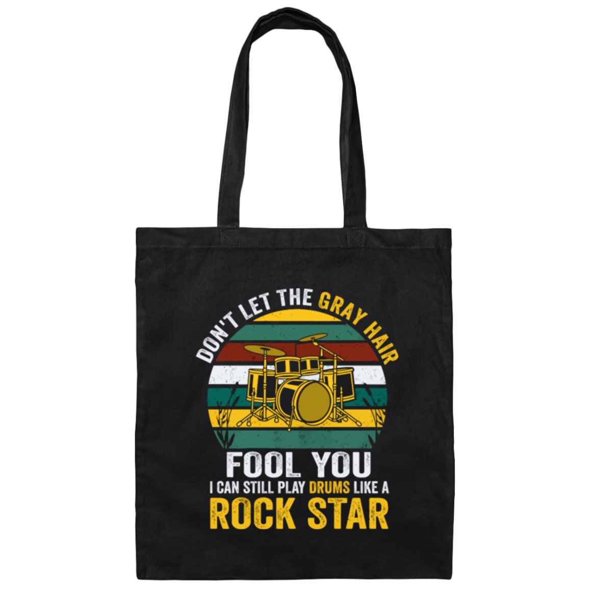 Drumming Player Vintage, I Play Drums Like A Rock Star Canvas Tote Bag