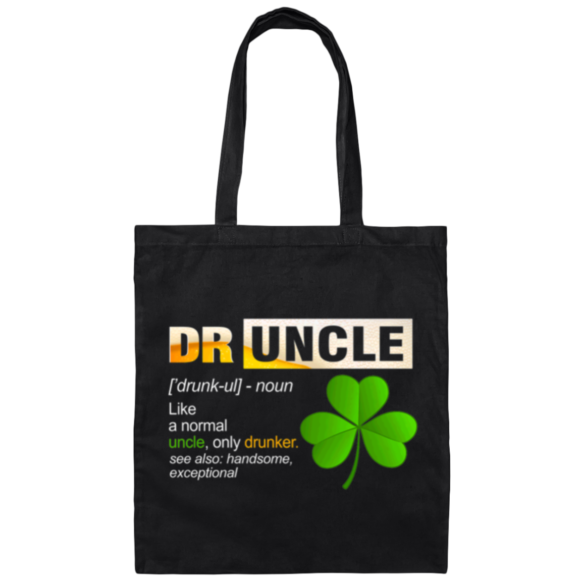 Druncle Definition, Funny Druncle Gift, Druncle Is Uncle Drunker, Shamrock Canvas Tote Bag