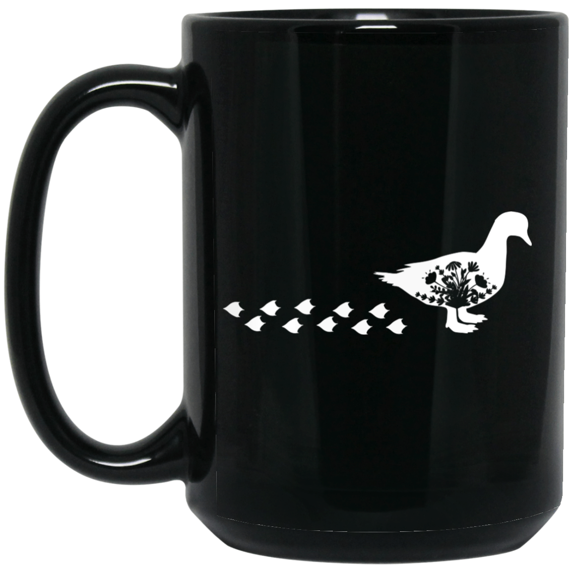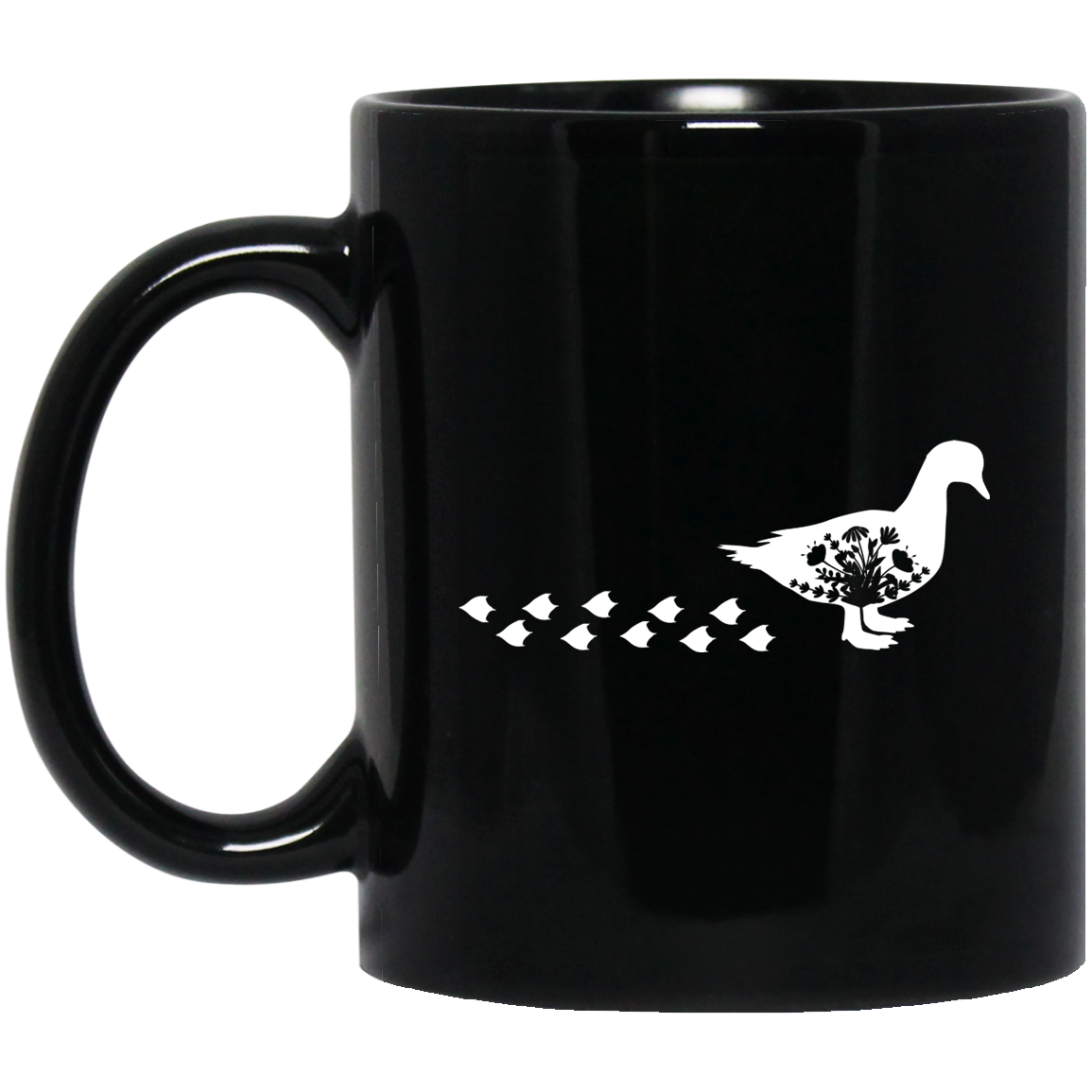 Duck Silhouette, Ducks Trace, Duck Footprint Black Mug