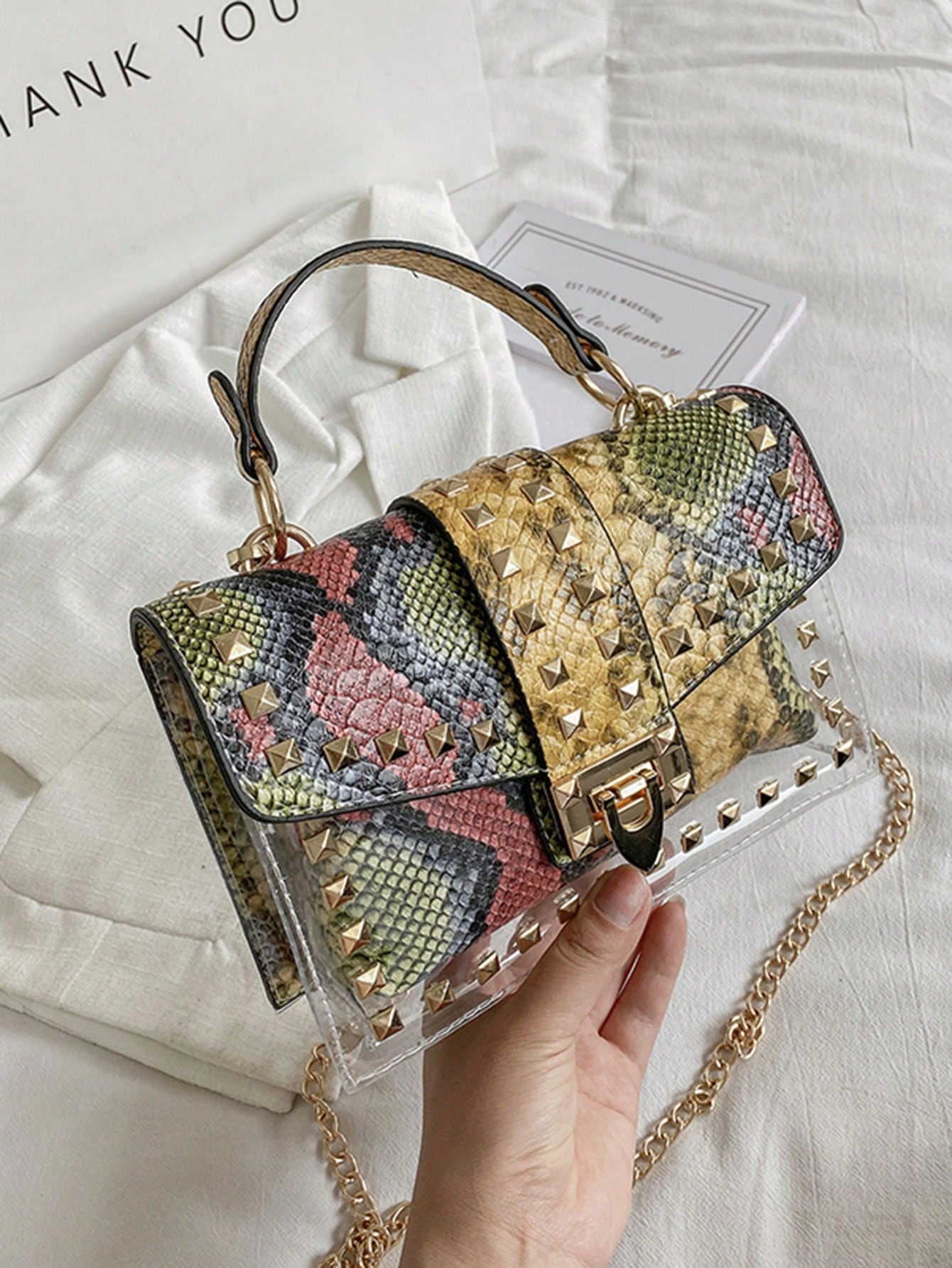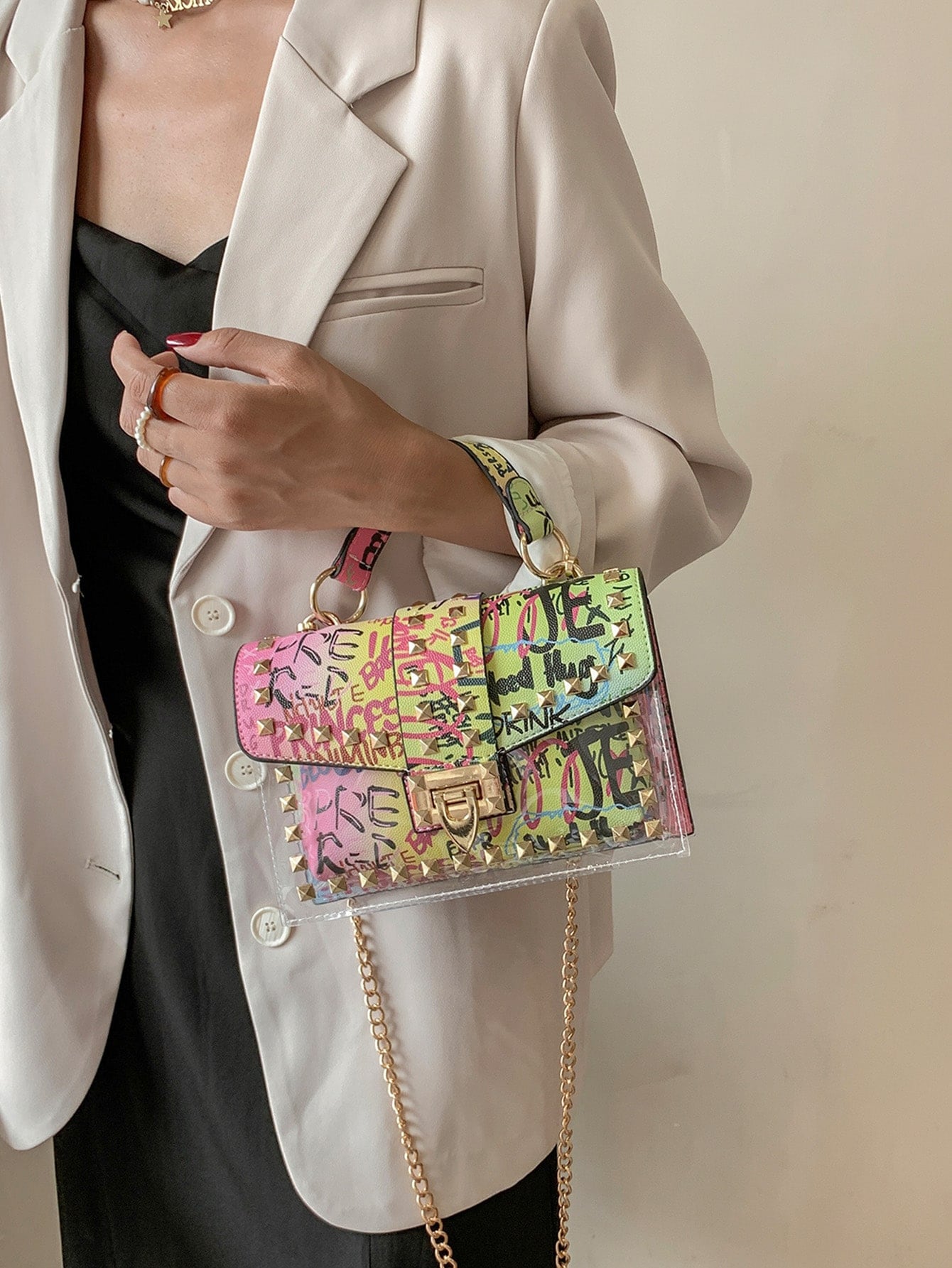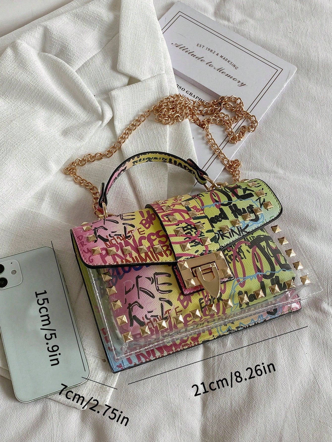 Edgy Graffiti Rivet Handbag: Trendy Urban Chic Accessory