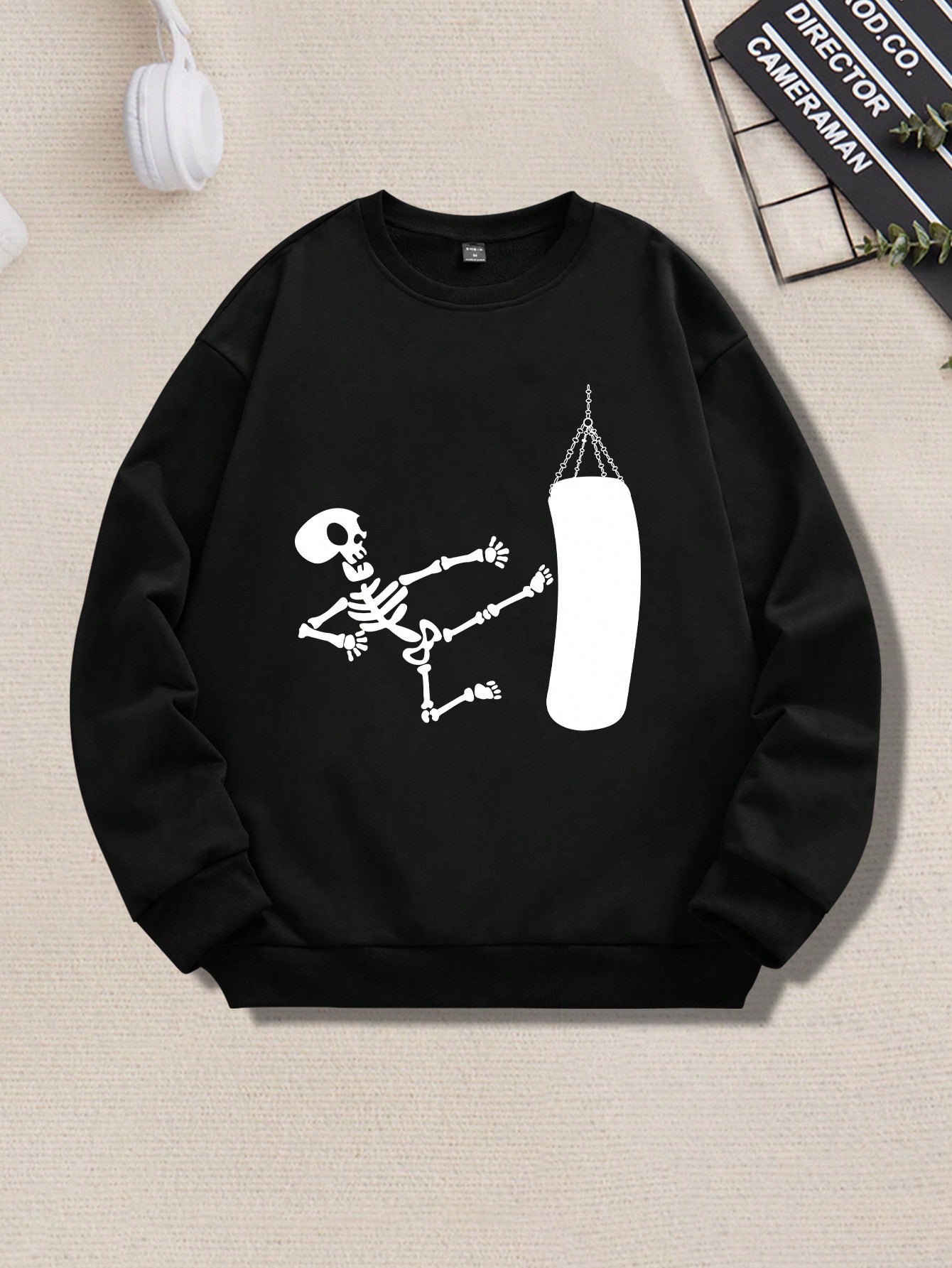 Edgy Skull Pattern Drop Shoulder Sweatshirt for Men