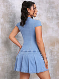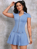 Effortless Chic: Casual & Sexy V-Neck Pleated Denim Mini Dress