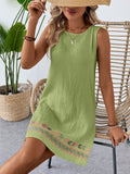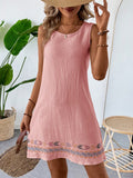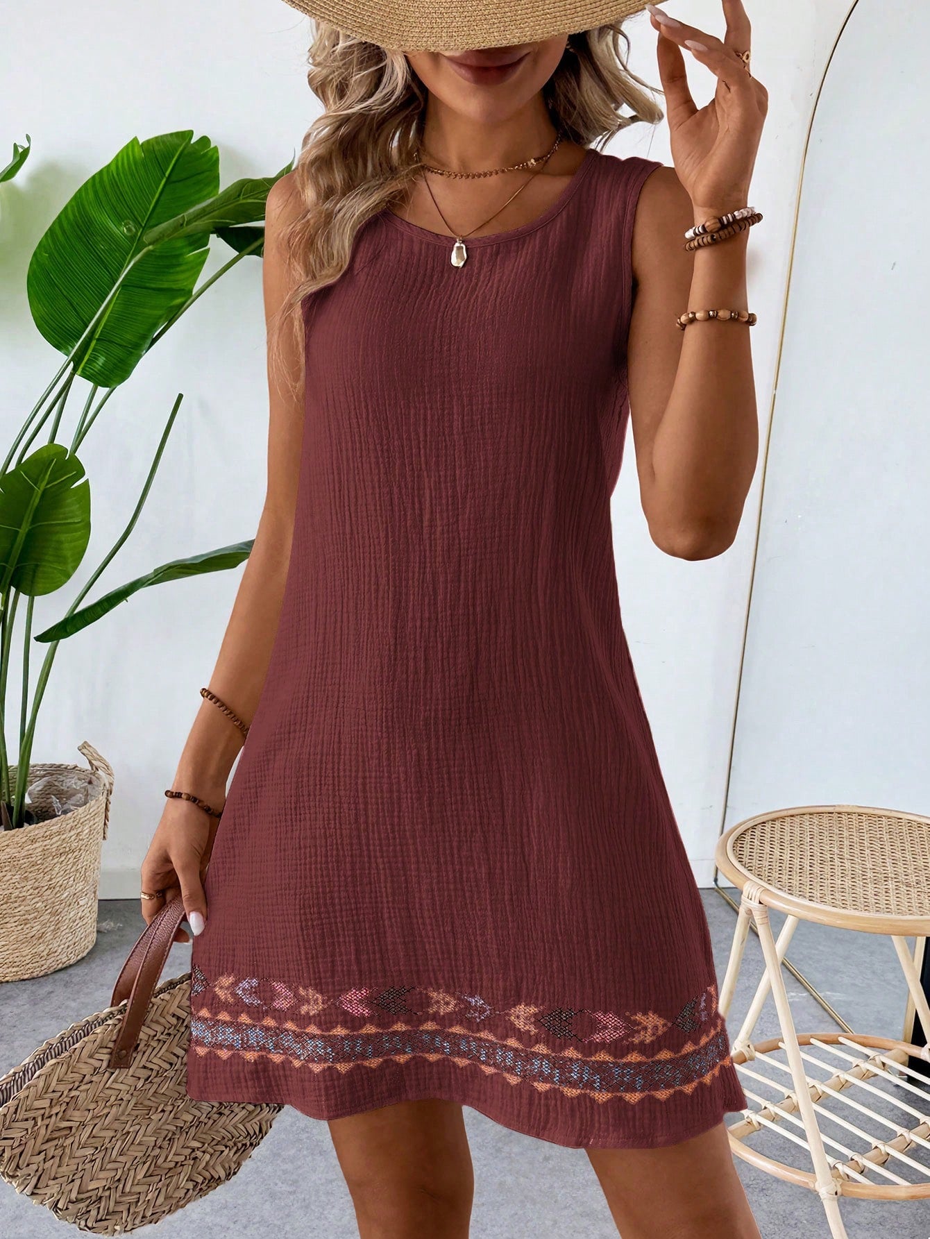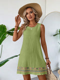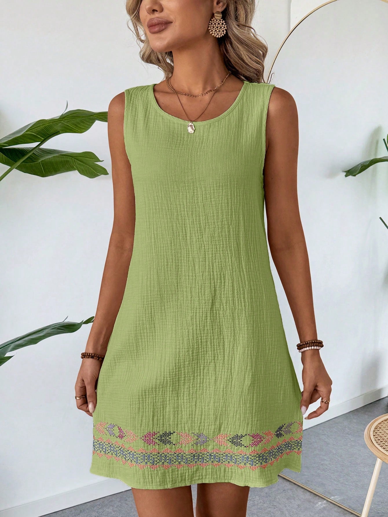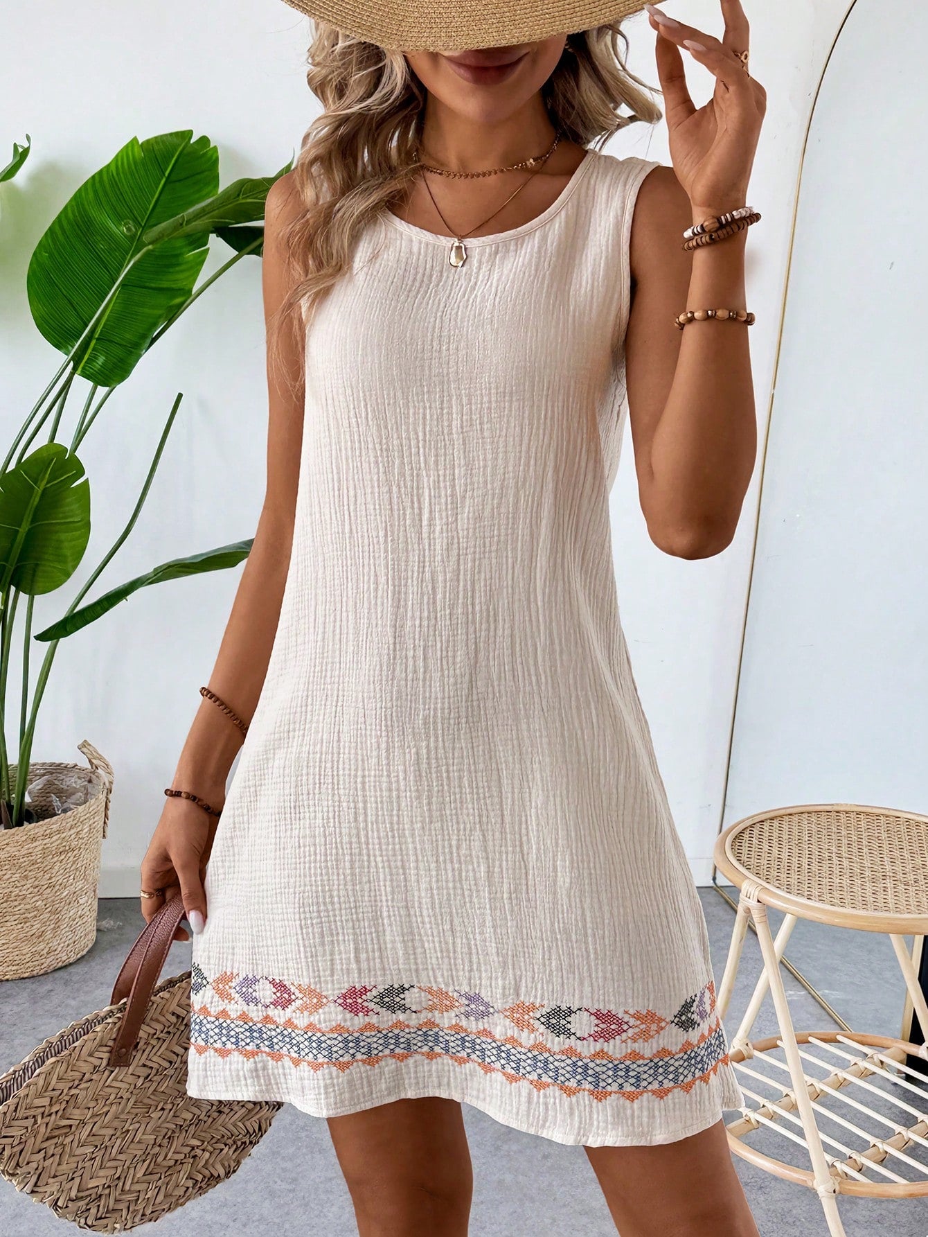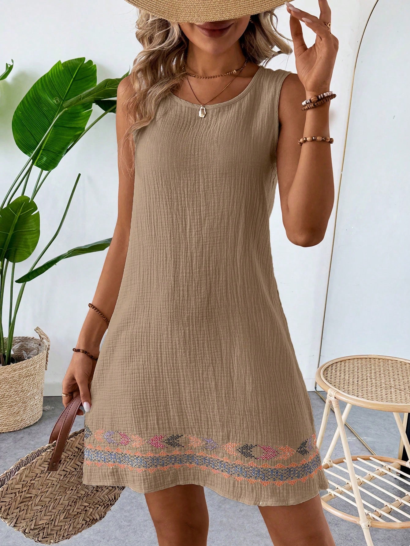 Effortless Elegance: Apricot Linen Texture Sleeveless Summer Dress