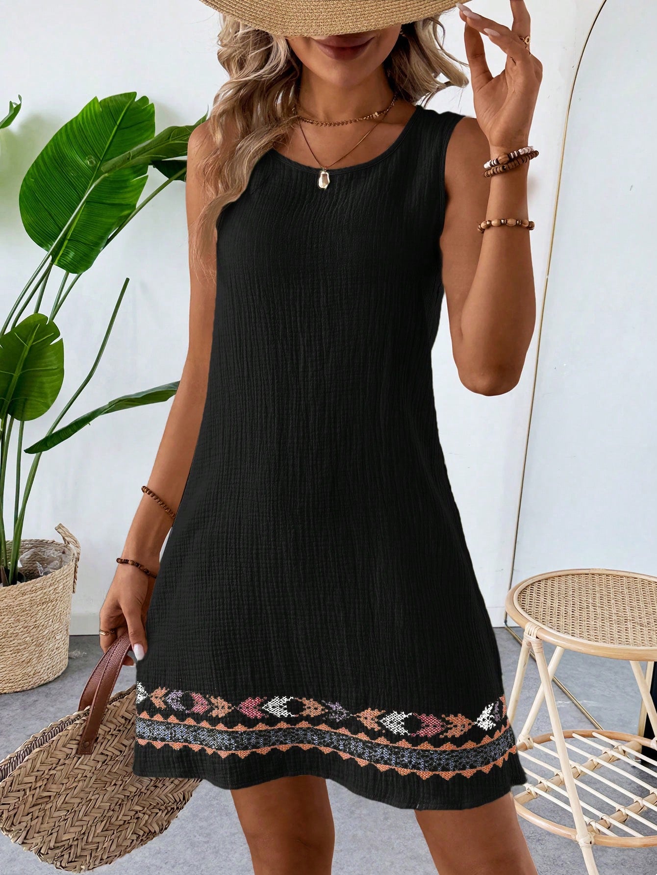 Effortless elegance meets summer style with our Apricot Linen Texture Sleeveless Summer Dress. Made from high-quality linen, this dress is lightweight and breathable, perfect for warm weather. The sleeveless design adds a touch of sophistication, making it a versatile and timeless addition to your wardrobe.
