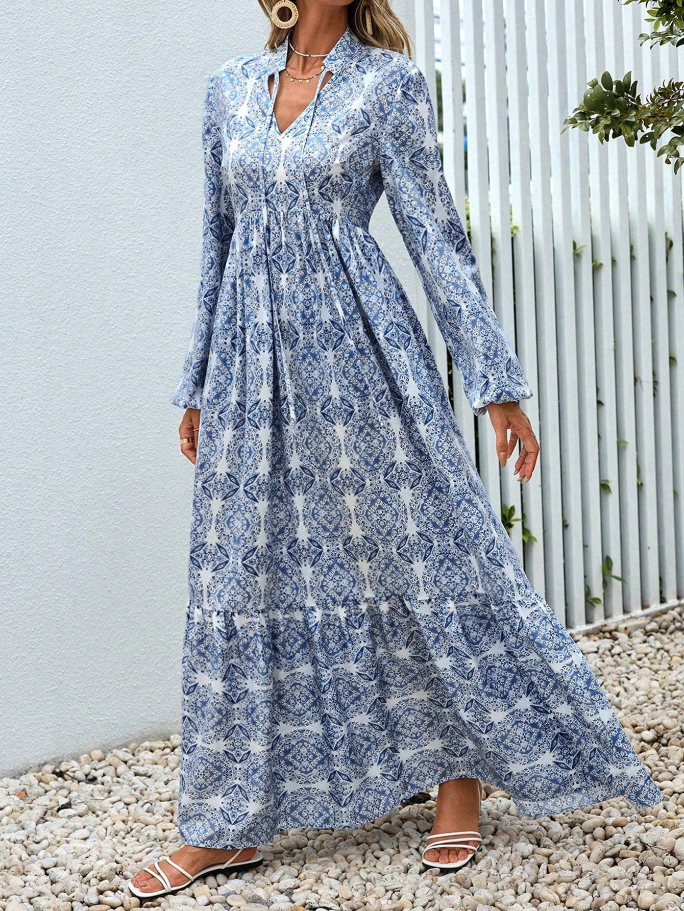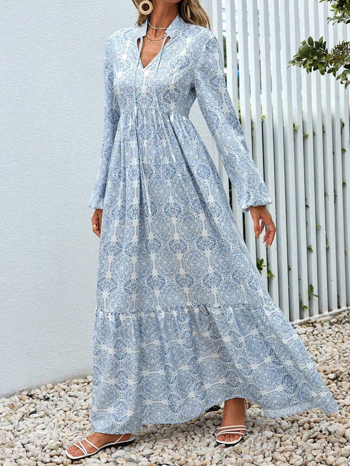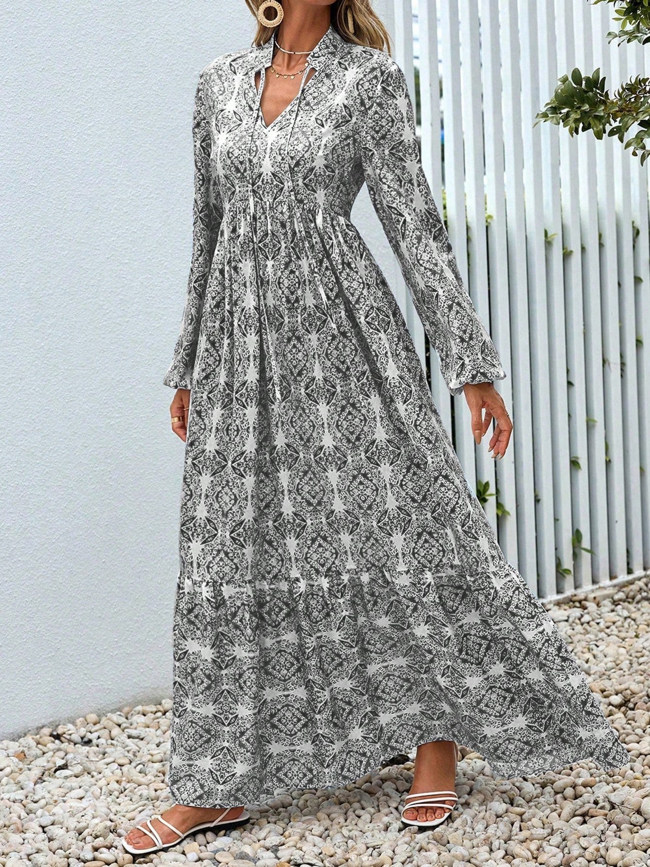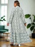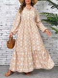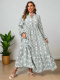 Effortless Elegance: Plus Size Casual Allover Print Lantern Sleeve Long Dress
