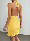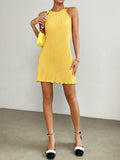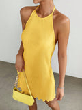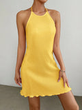 Effortless Elegance: Solid Color Ribbed Halter Neck Sleeveless Dress
