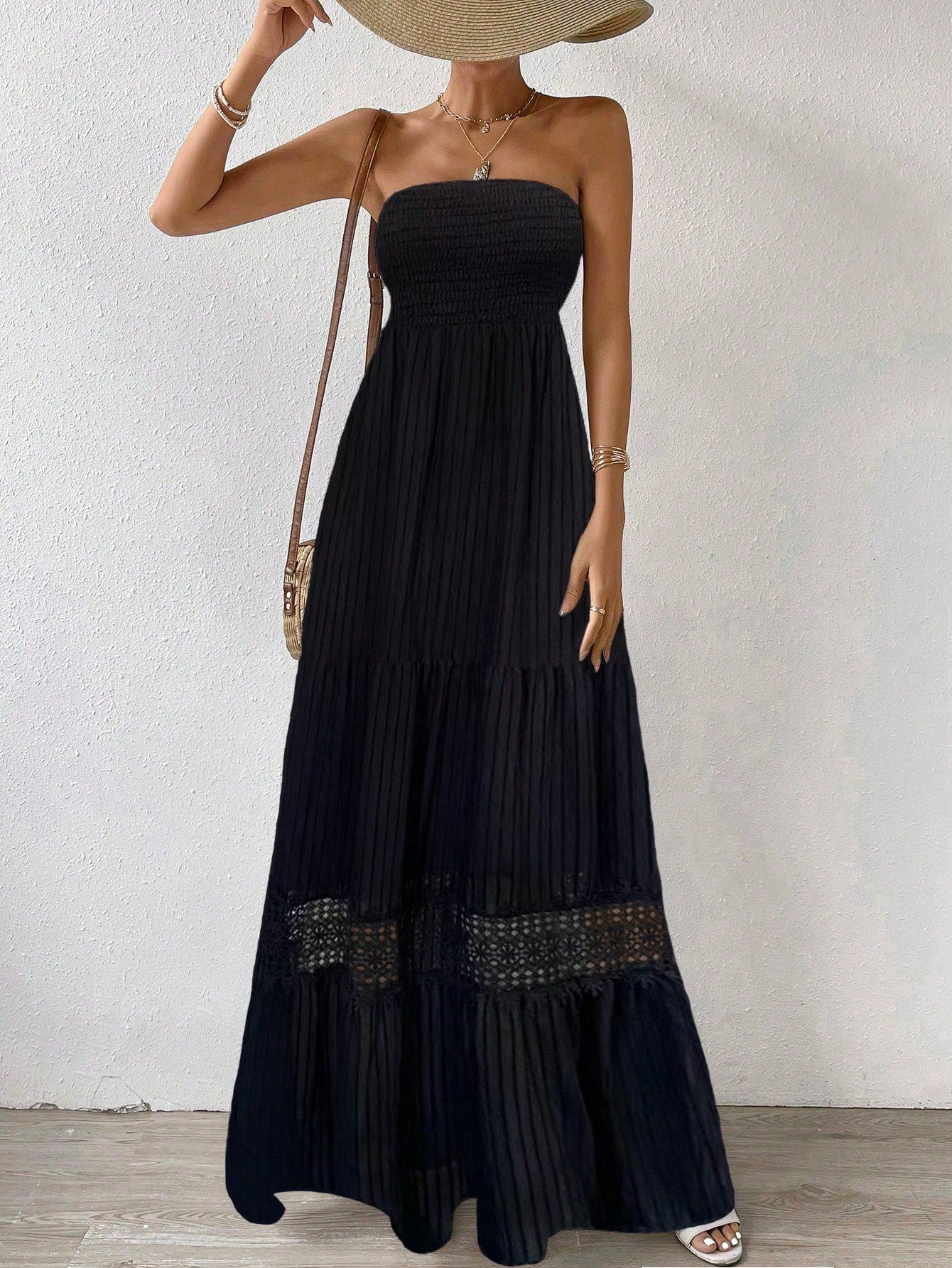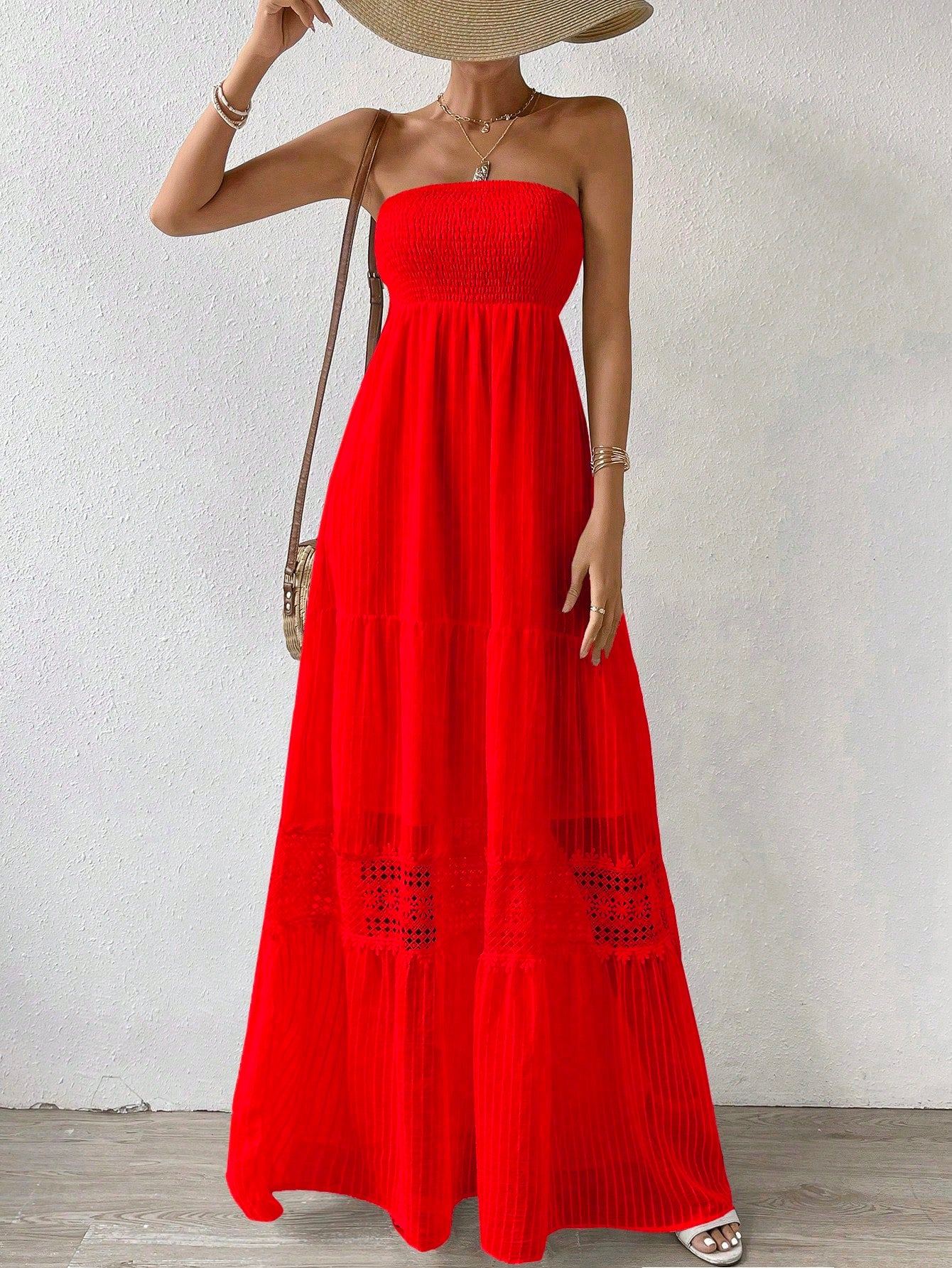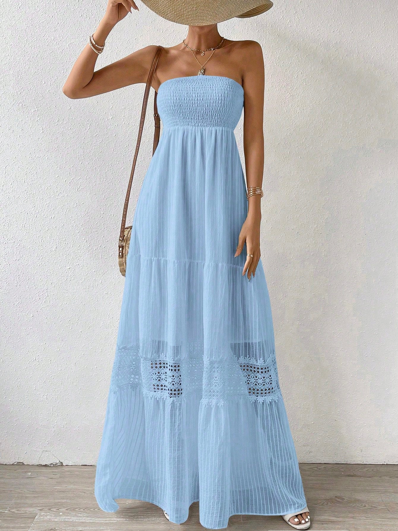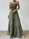 Effortless Elegance: Strapless Drawstring Waist Casual Vacation Dress