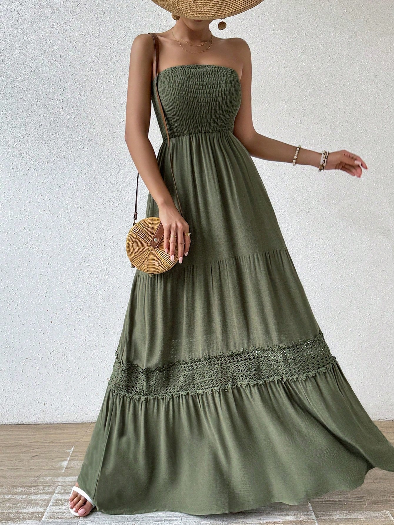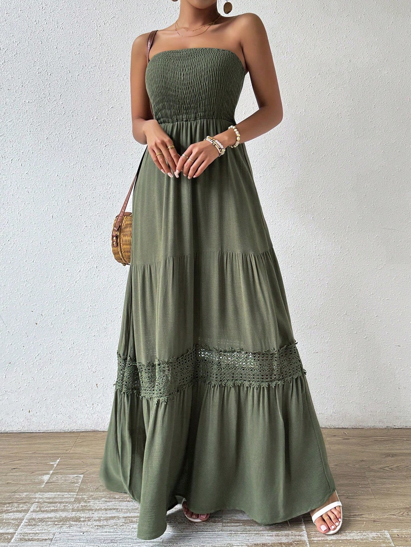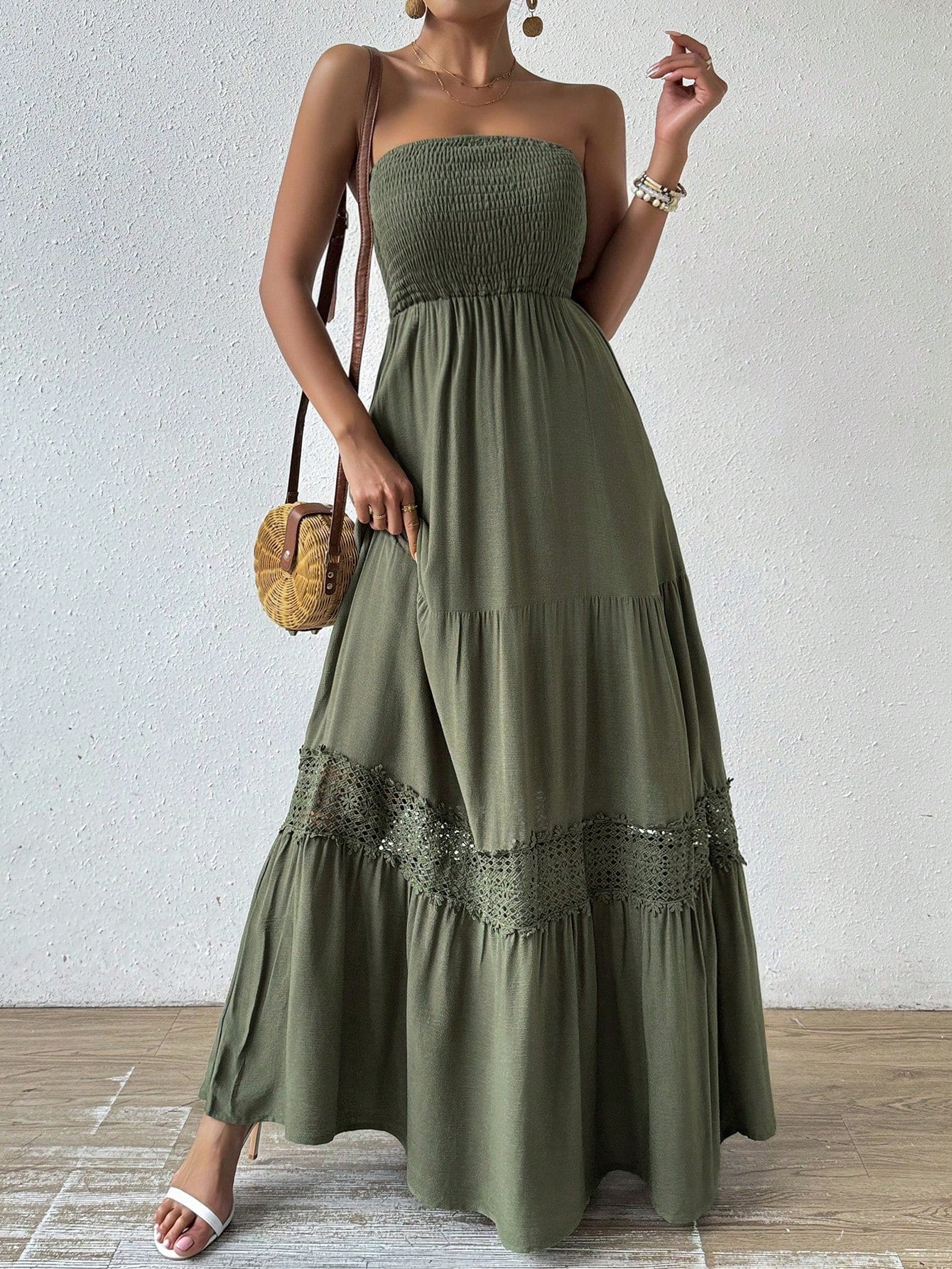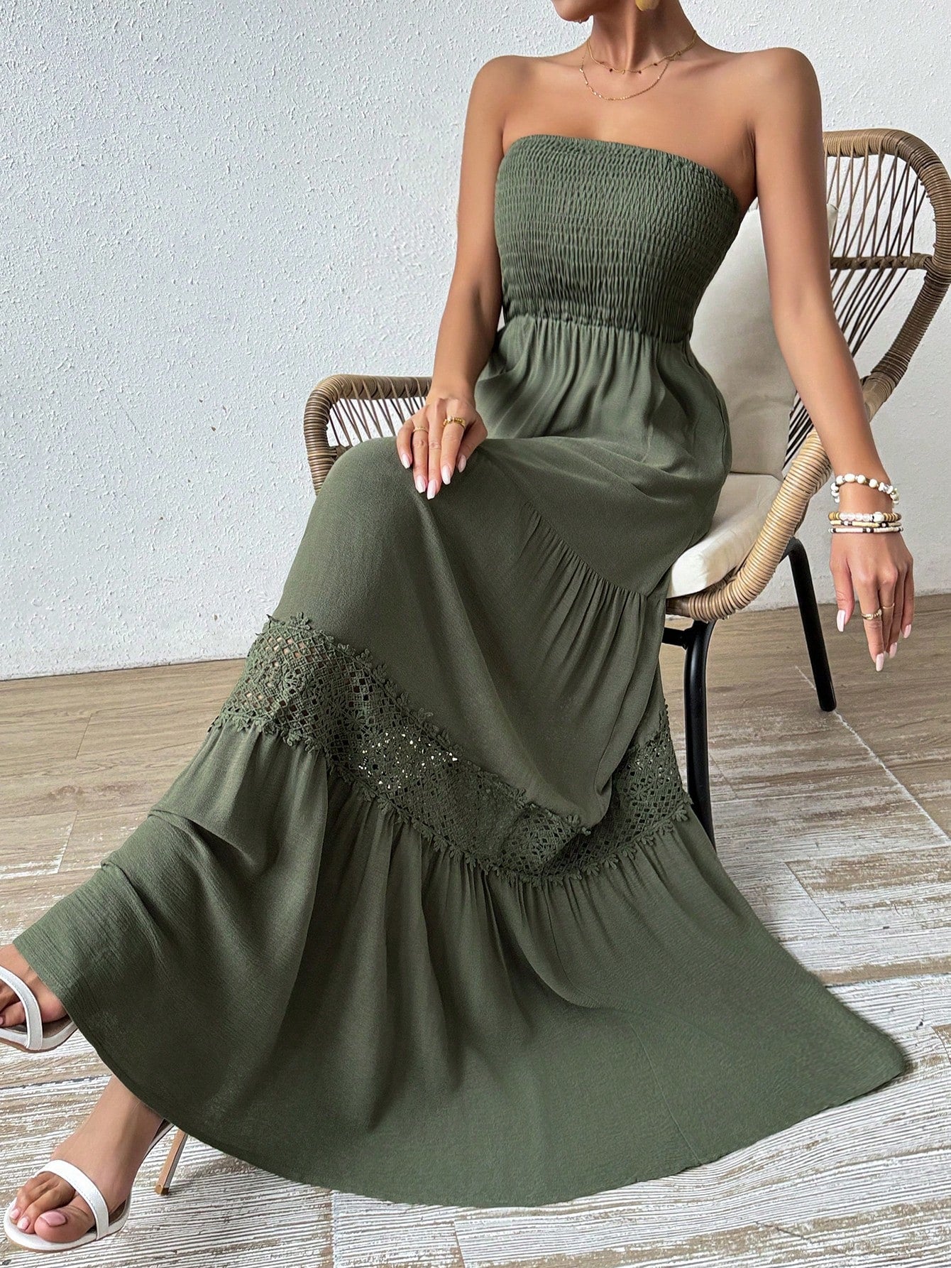 Effortless Elegance: Strapless Drawstring Waist Casual Vacation Dress