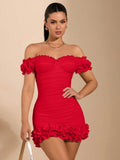 Effortless Elegance: Summer Ruffled Off-Shoulder Bodycon Dress