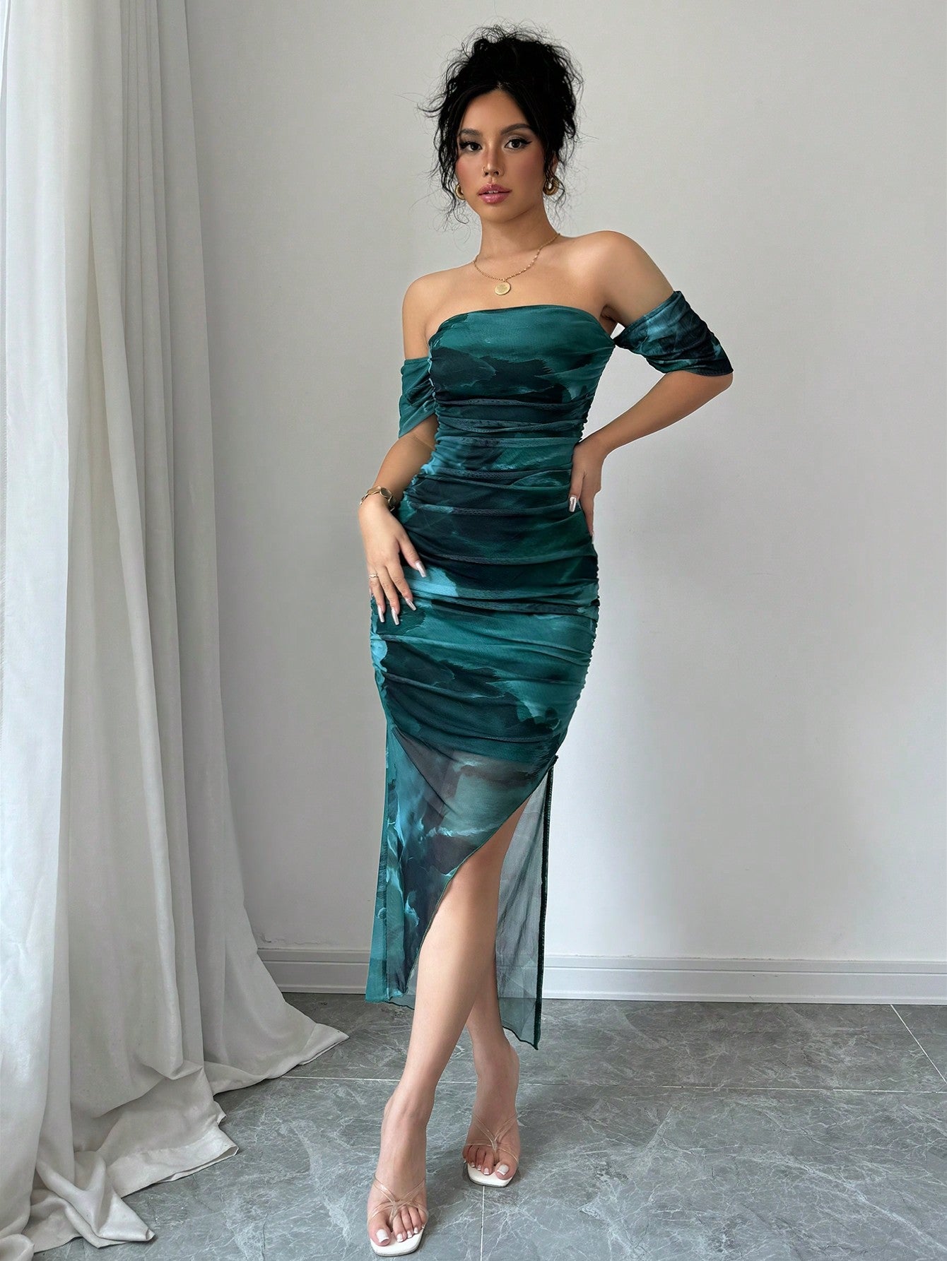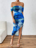 Effortless Elegance: Women's Off-Shoulder Printed Casual Dress