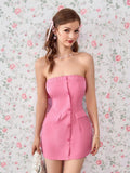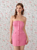 Effortless Elegance: Women's Strapless Solid Color Dress