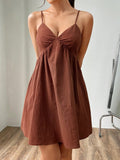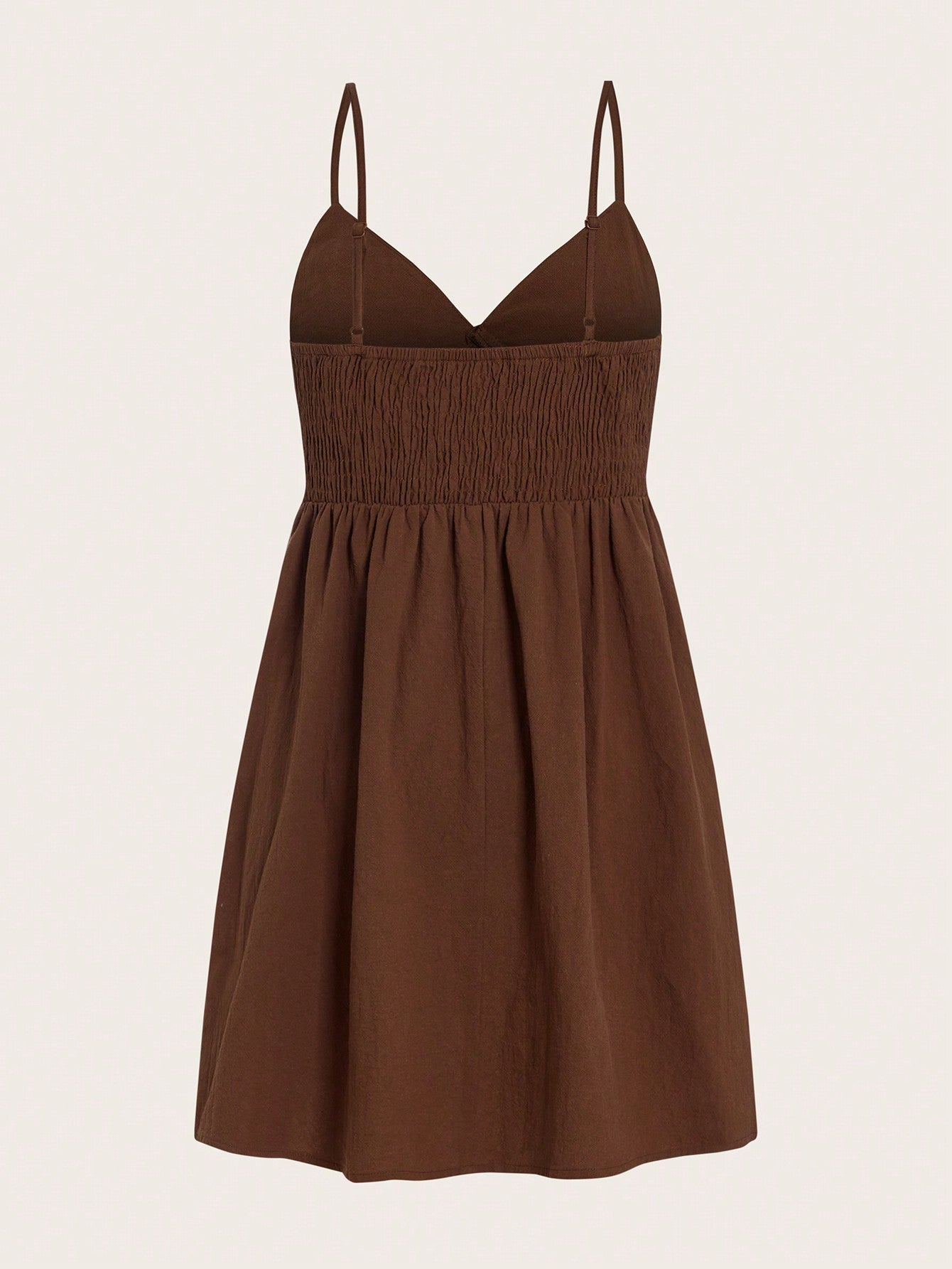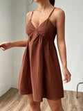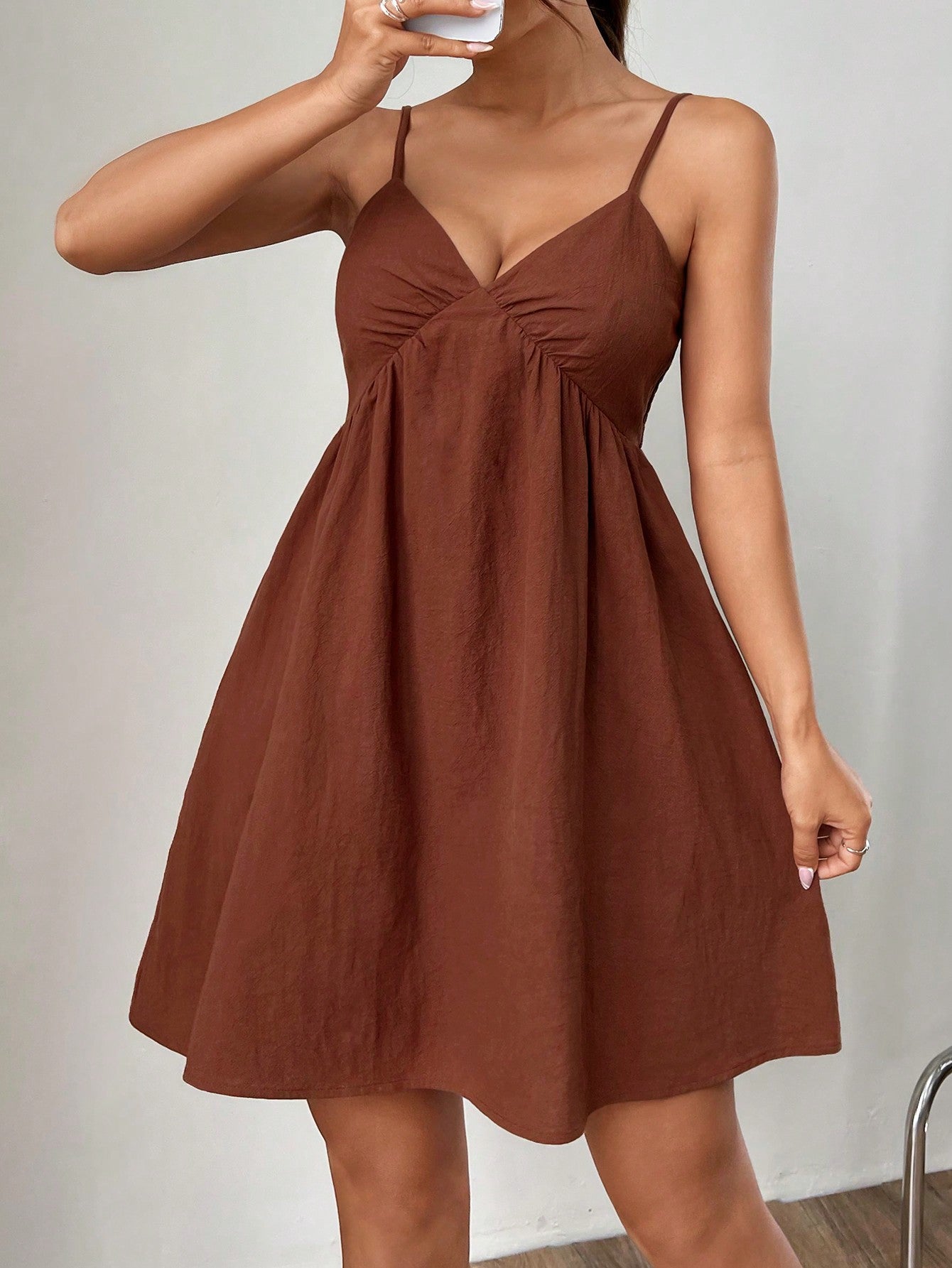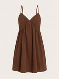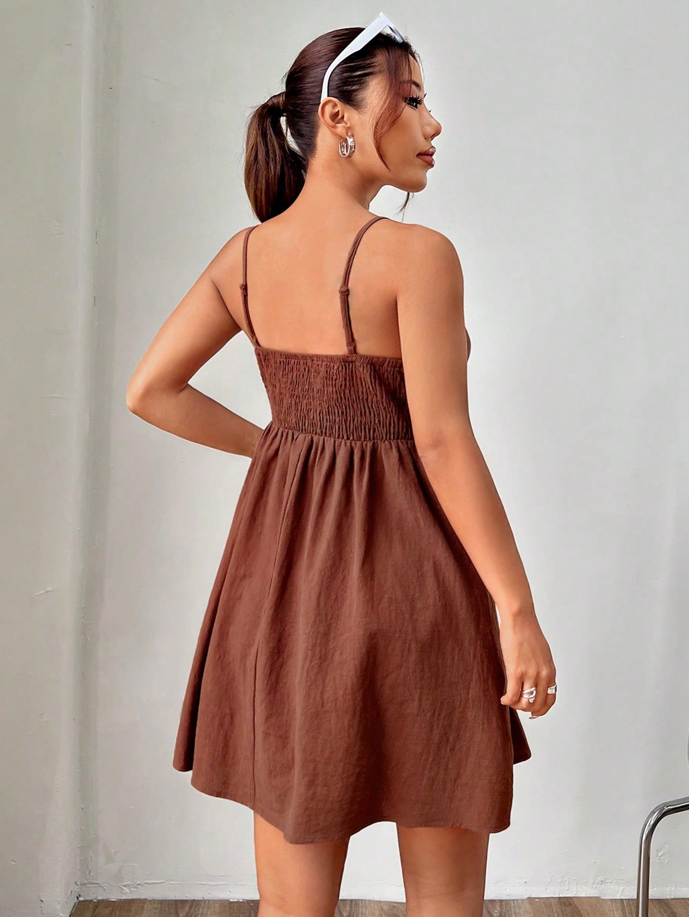 Effortlessly Chic: Brown Woven Spaghetti Strap Summer Dress