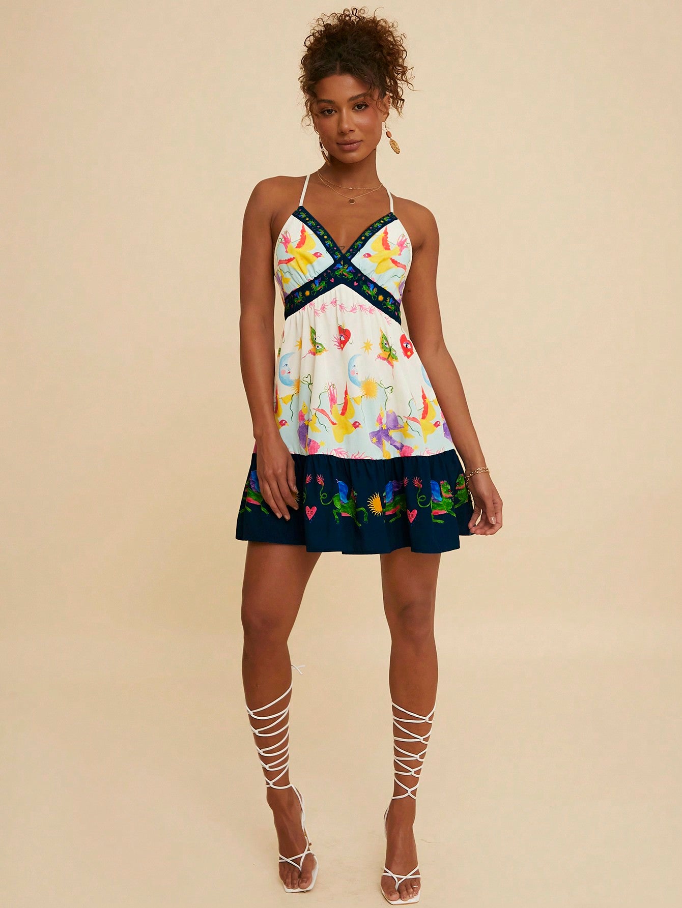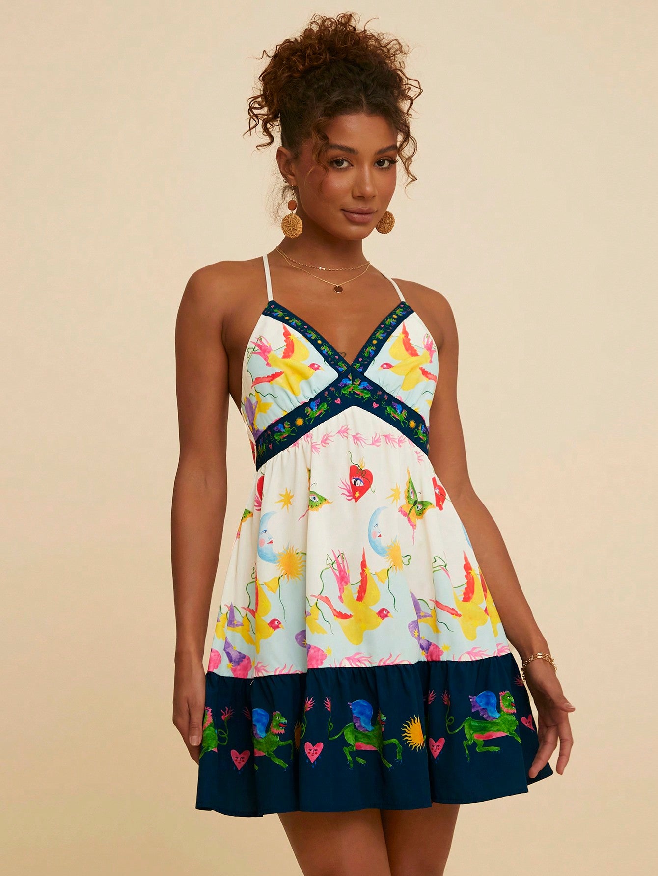 Effortlessly Chic: Floral Print Crisscross Back Mini Slip Dress for Stylish Vacations