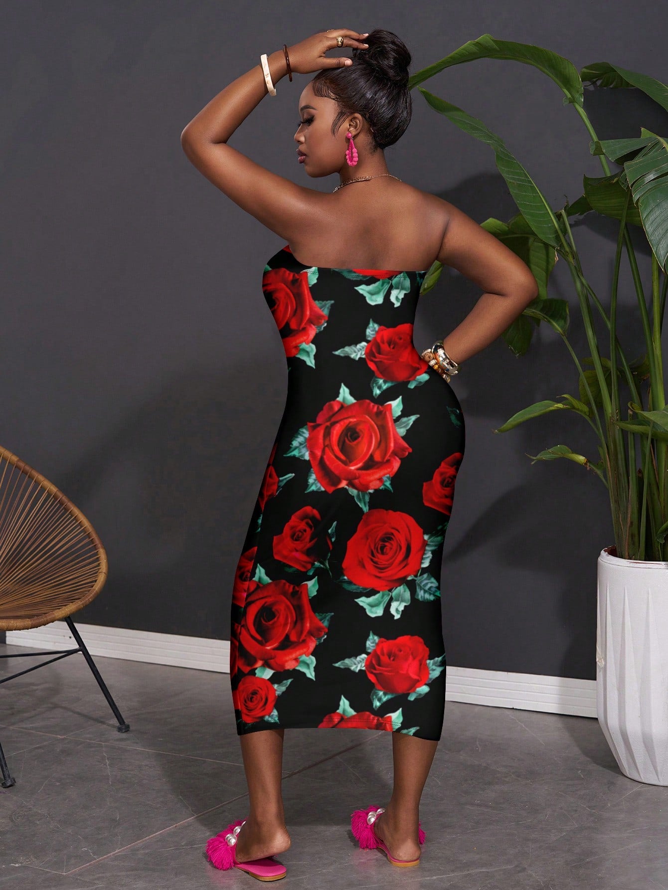 Effortlessly exude chic style this summer with our plus size Camisole Dress. Featuring a minimalistic rose floral print, this dress is perfect for any casual occasion. Stay cool and stylish with our must-have summer dress!