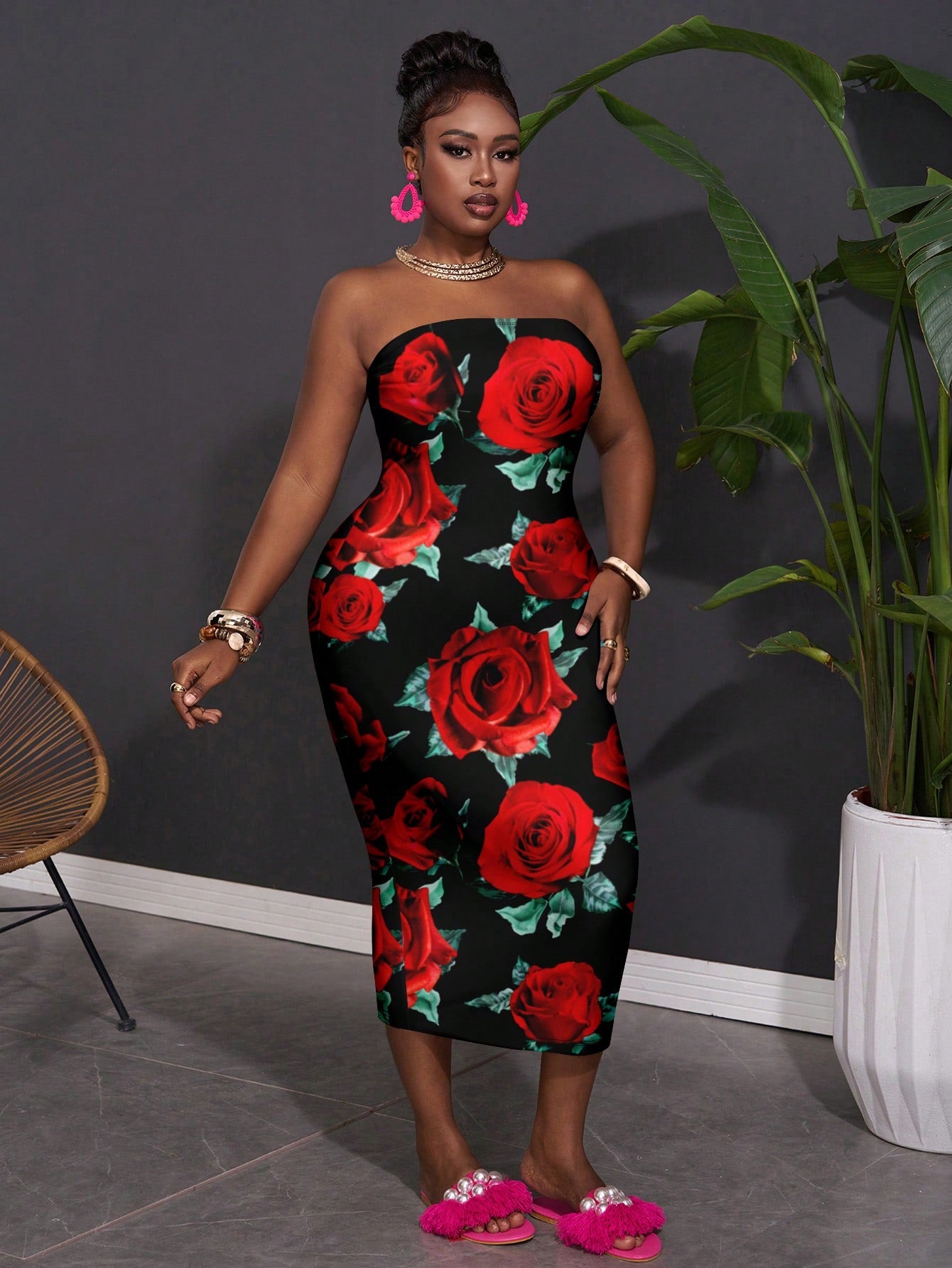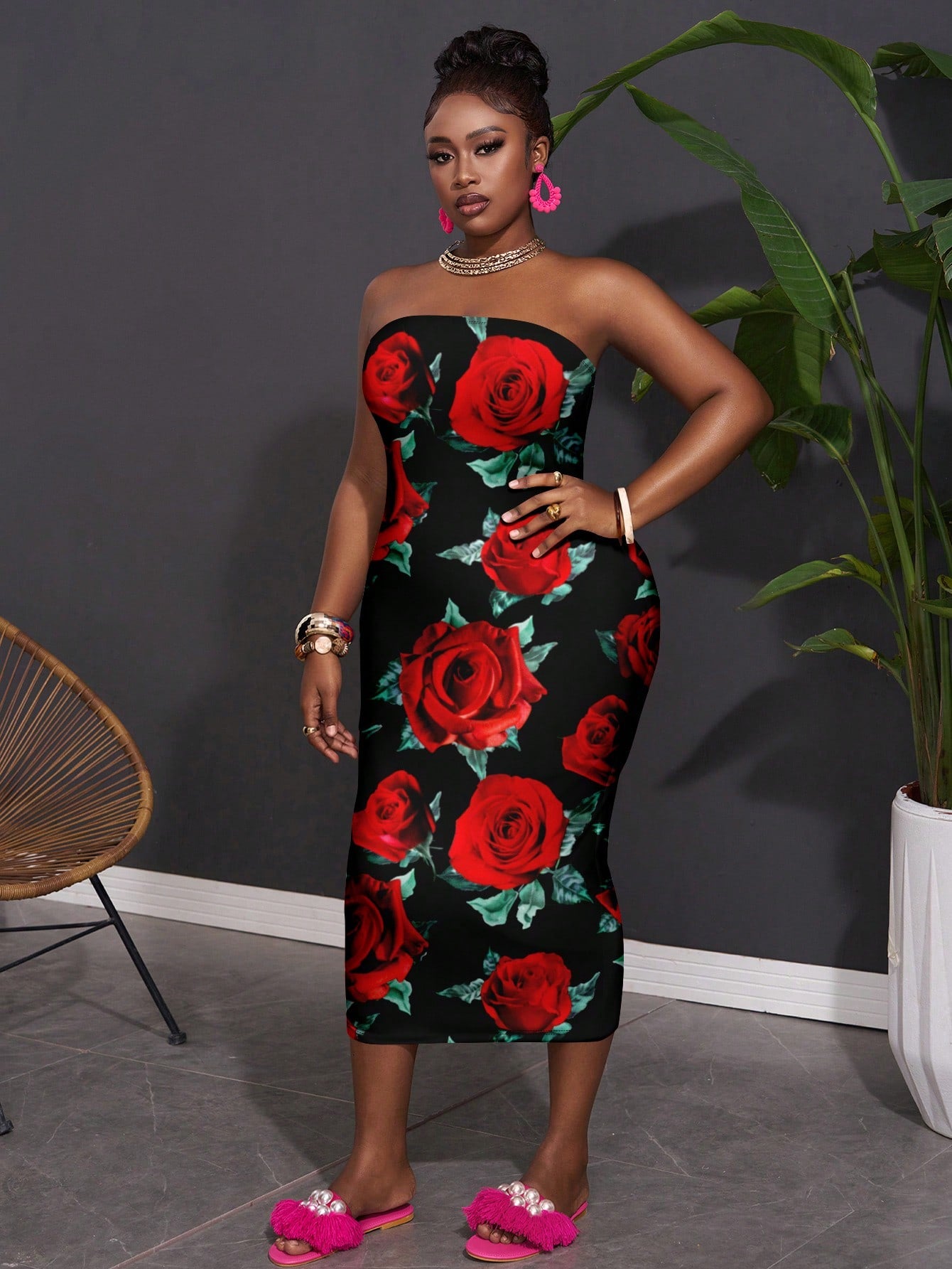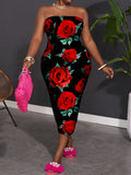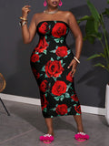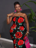 Effortlessly Chic: Plus Size Casual Minimalist Rose Floral Print Camisole Dress for Summer