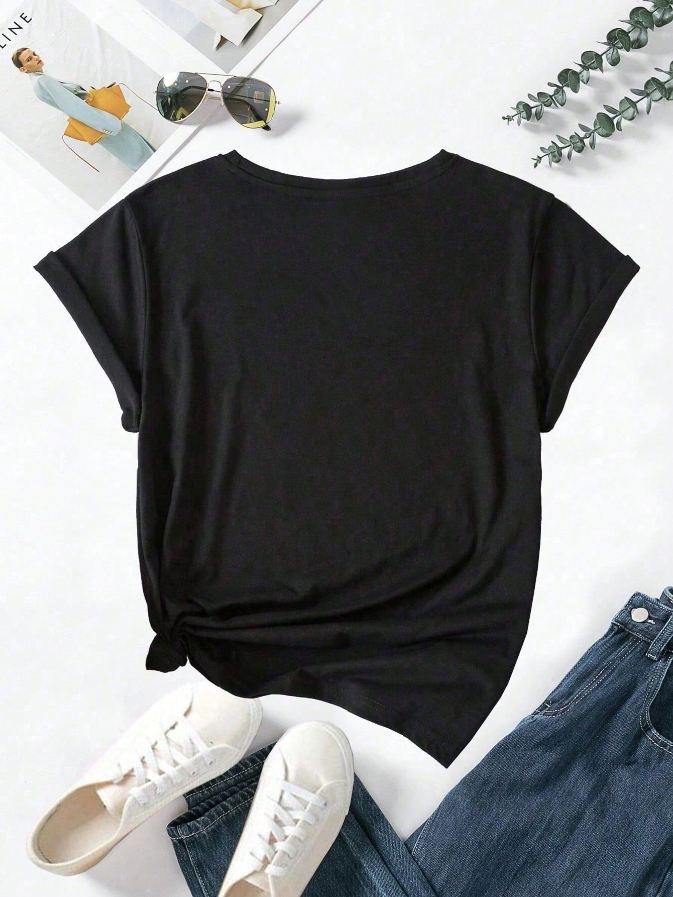 Effortlessly Chic: Women's Round Neck Printed T-Shirt for Casual Daily Style