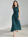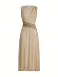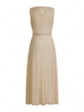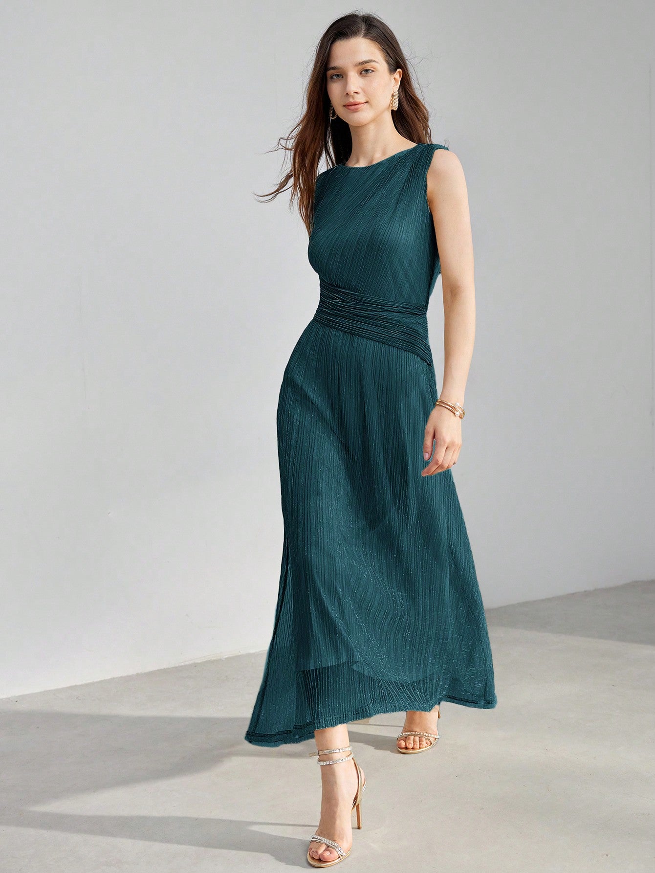 Elegance in Motion: Premium Solid Ruched Waist Plisse Dress